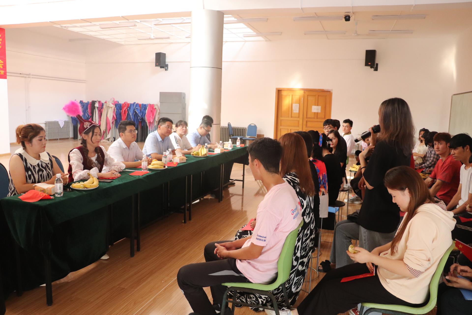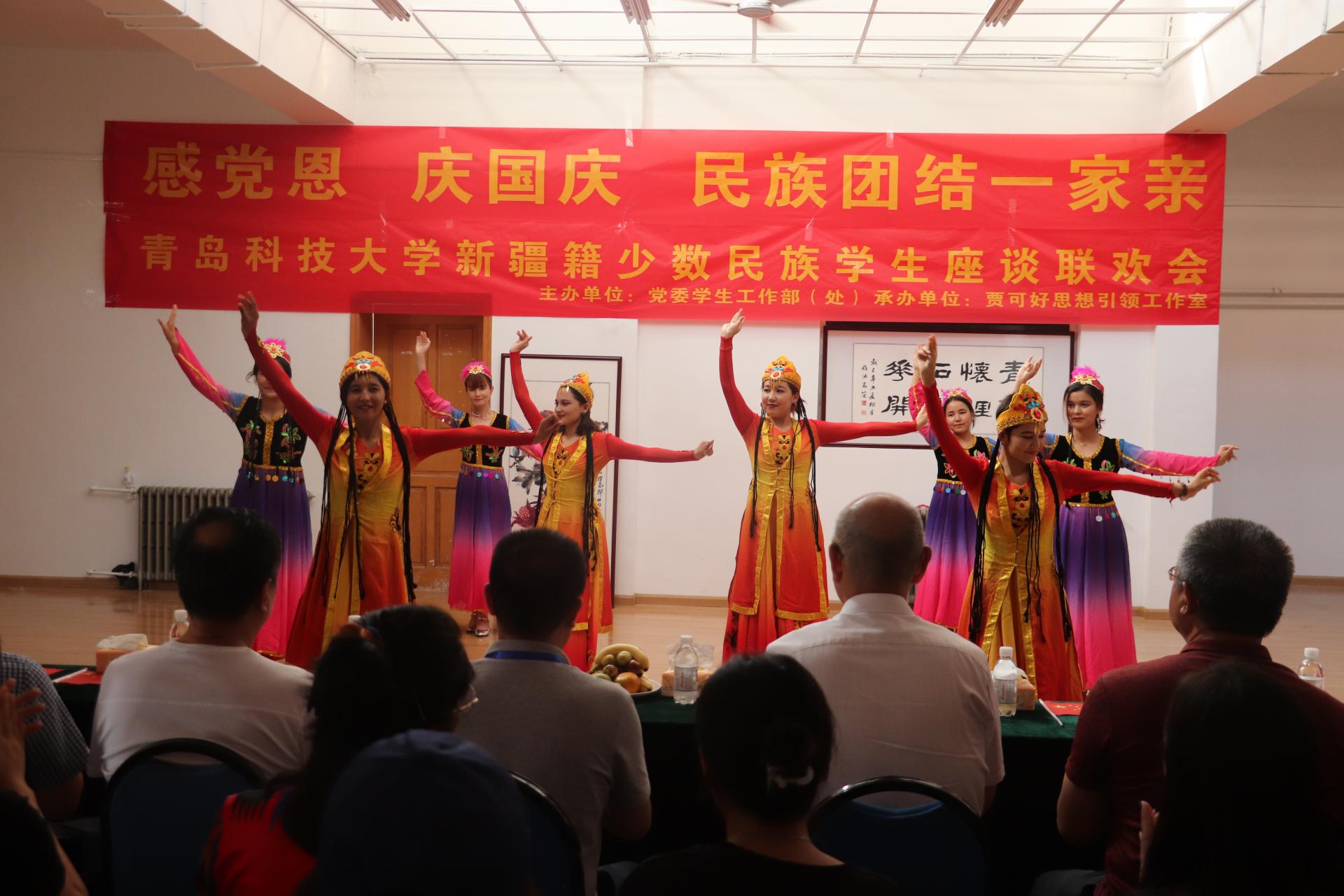 民族团结一家亲。10月1日下午,校长陈克正与相关职能部门负责人走访看望了正在开展新疆籍少数民族学生联欢会的同学们,与留校的同学们一起庆祝新中国72周年华诞。陈克正向同学们送去了国庆节的暖心祝福,同时委托同学们转达他对家长们的美好祝愿,并代表学校党委和行政表示,对同学们遇到的学习生活等方面的问题与困难给予高度重视,会责成相关部门妥善解决。联欢会上,少数民族学生们表演了民族舞《民族大团结》、诗朗诵《信念永不褪色》等特色节目。现场气氛欢快而热烈。