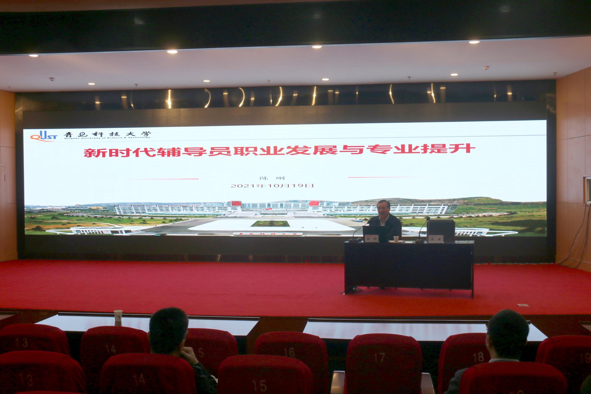 10月19日,学校在崂山校区“英科”报告厅举办“两化四有”辅导员素质能力提升培训会,邀请党委常委、宣传部部长陈刚,为各学院(校区)分管学生工作书记、专兼职辅导员作了题为《新时代辅导员职业发展与专业提升》的专题讲座。党委学生工作部副部长王丽主持培训会。