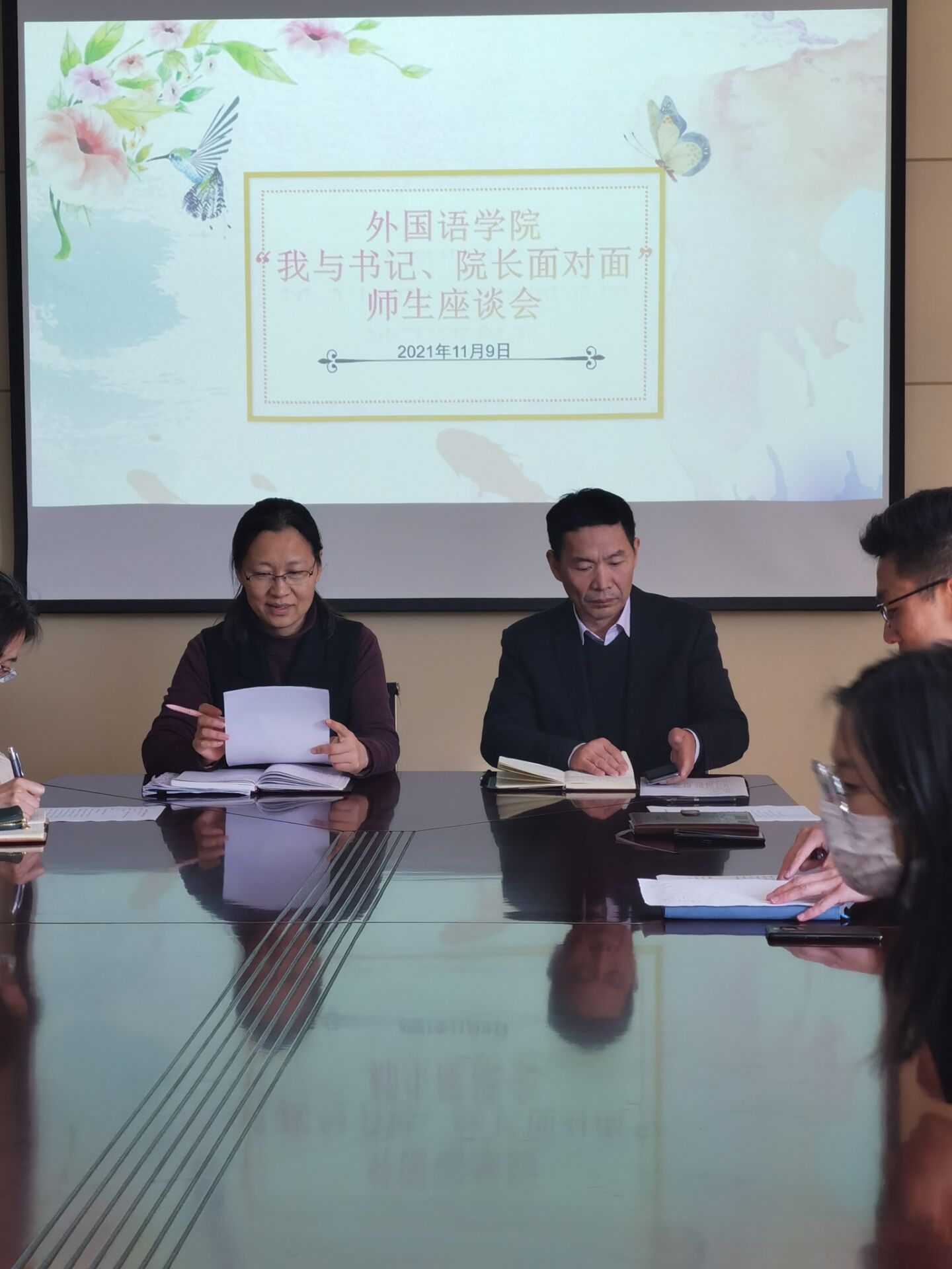 今后外国语学院将扎实推进“院长、书记面对面”师生座谈会的开展,广泛听取同学们的意见,吸收合理化建议,切实将学生管理和服务工作做实做细。