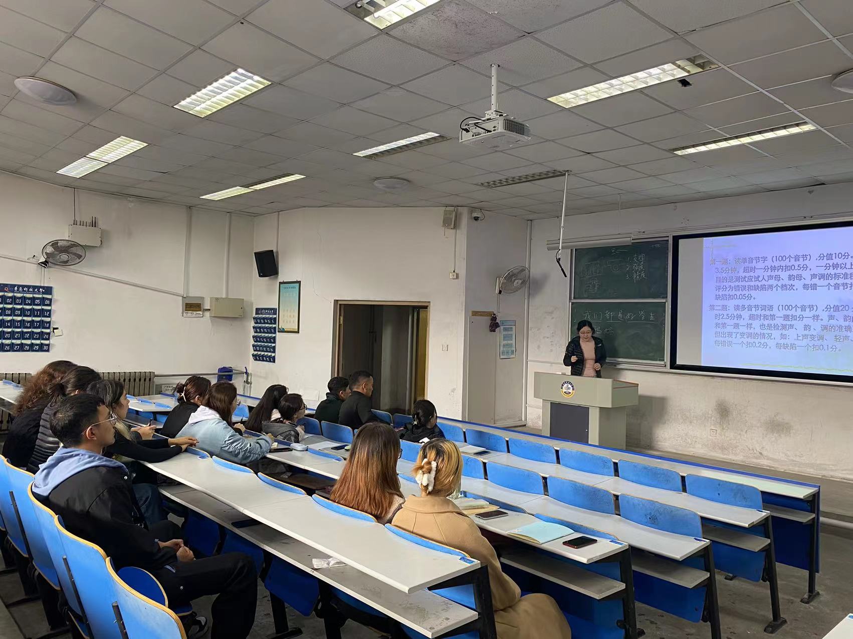 为提升天游官网新疆籍学生普通话水平,近日,学生工作处少数民族学生工作办公室会同教务处有关科室分别在崂山、四方校区对2020级新疆籍学生组织了普通话水平测试培训,特邀请省级普通话水平测试员牛翔老师进行现场培训辅导。这是在非普通话测试时期,根据学校学生座谈会有关提议为新疆籍学生特别安排的专场培训,全校20余名新疆籍学生参加了培训。