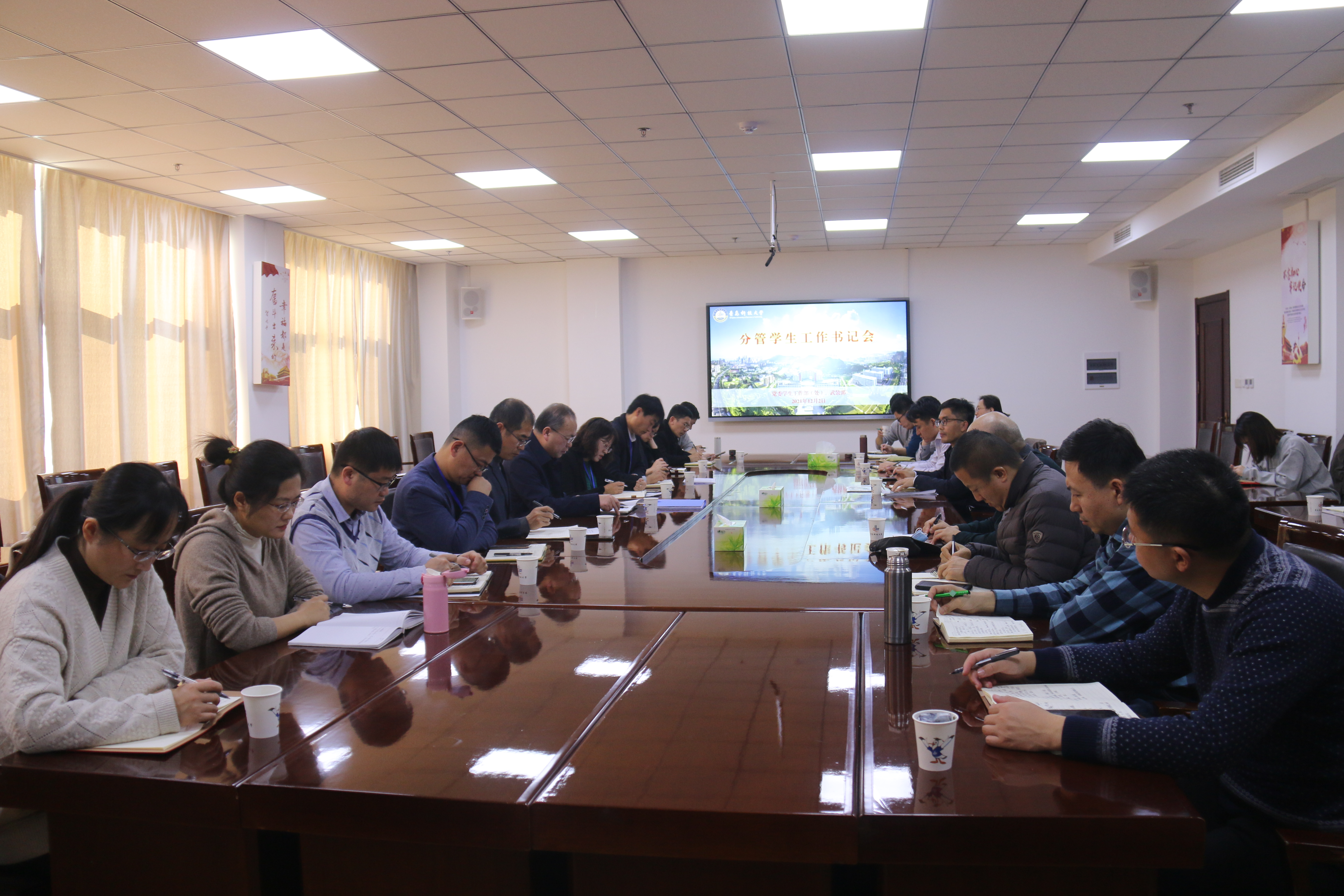 12月2日,学校在崂山校区综合服务楼3015会议室召开分管学生工作书记会。党委常委、副校长丁林出席会议并讲话。学生工作处副处长王丽主持会议。