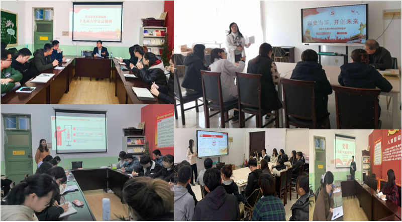党课宣讲紧密结合,学院师生全体覆盖。学院各党支部以党支部书记上党课进行十九届六中全会精神宣讲。保证下化学院全体党员在上党课的同时了解全会思想,加强学习的深度与广度,引导学生关注全会重点热点,深刻把握全会精神实质,让十九届六中全会精神走进每位党员的身边,结合自己的学习生活谈分享、写感悟,立志明大德、担重任。