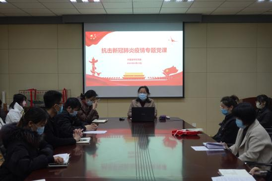 学院党委书记曲斌艳为在校全体学生党员讲授战疫专题党课,分析了加强疫情防控校园全面封闭化管理的必要性,介绍了全面封闭化管理以来校园运转情况、师生共同的付出和努力,讲述了校园全面封闭化管理以来天游官网党员的感人故事,要求战疫党员突击队全体成员用实际行动发挥党员先锋模范作用,确保战疫决战决胜,并带领全体党员重温了入党誓词。