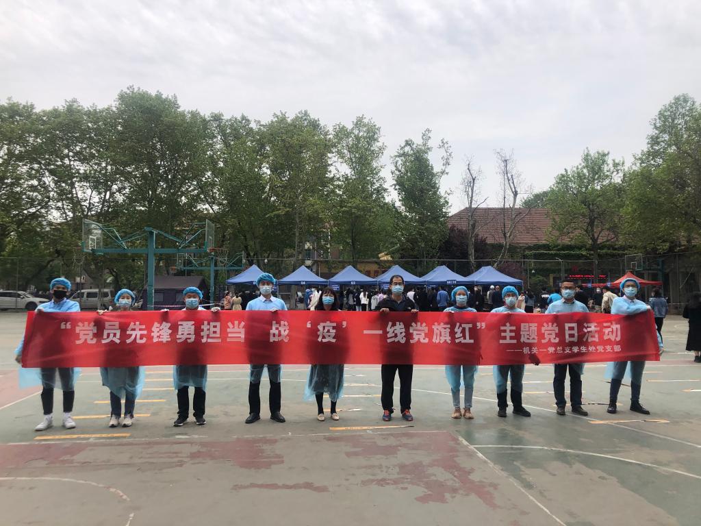 另悉,学生处党支部在4月28日开展了“党员先锋勇担当 战疫一线党旗红”主题党日活动。支部党员在四方校区核酸检测现场进行志愿服务,提醒学生做好个人防护,引导学生按要求有序进行核酸检测。支部党员前往四方校区橡胶谷连接处、西门附近、慧园丙楼南院墙、塑料楼附近等地进行校园巡逻,排查安全隐患。通过开展主题党日活动,支部党员积极投身到防疫第一线、战斗在最前沿,立足岗位,以扎实的作风,热情的服务诠释共产党员的使命与担当。