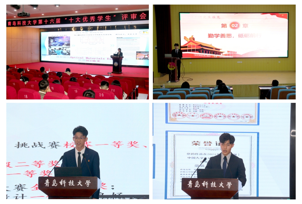 据悉,受疫情影响,此次“十大优秀学生”现场评审环节采取线上线下相结合的方式进行,主会场设在崂山校区,四方校区、高密校区设分会场,三校区同步线上进行。评审会上,23名候选人紧密结合自身学习、工作实际情况,从学术科研、班团活动、志愿服务、社会实践、创新创业等方面展现了他们多彩的大学生活与收获,展现了科大学子勇于践行“明德、笃学、弘毅、拓新”的良好精神面貌。各学院(校区)19名教师代表与95名学生代表结合候选人事迹与现场表现进行了评审投票。