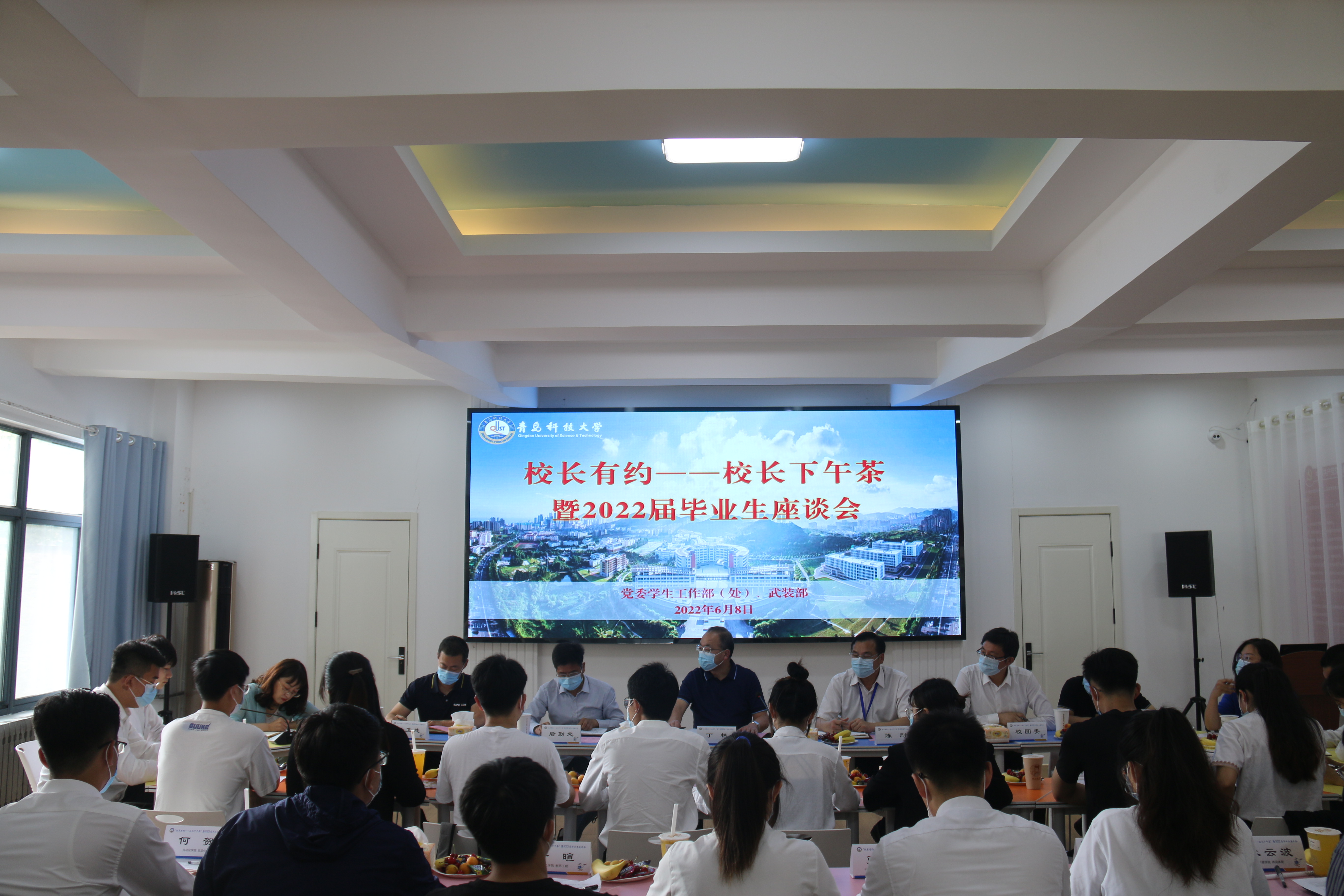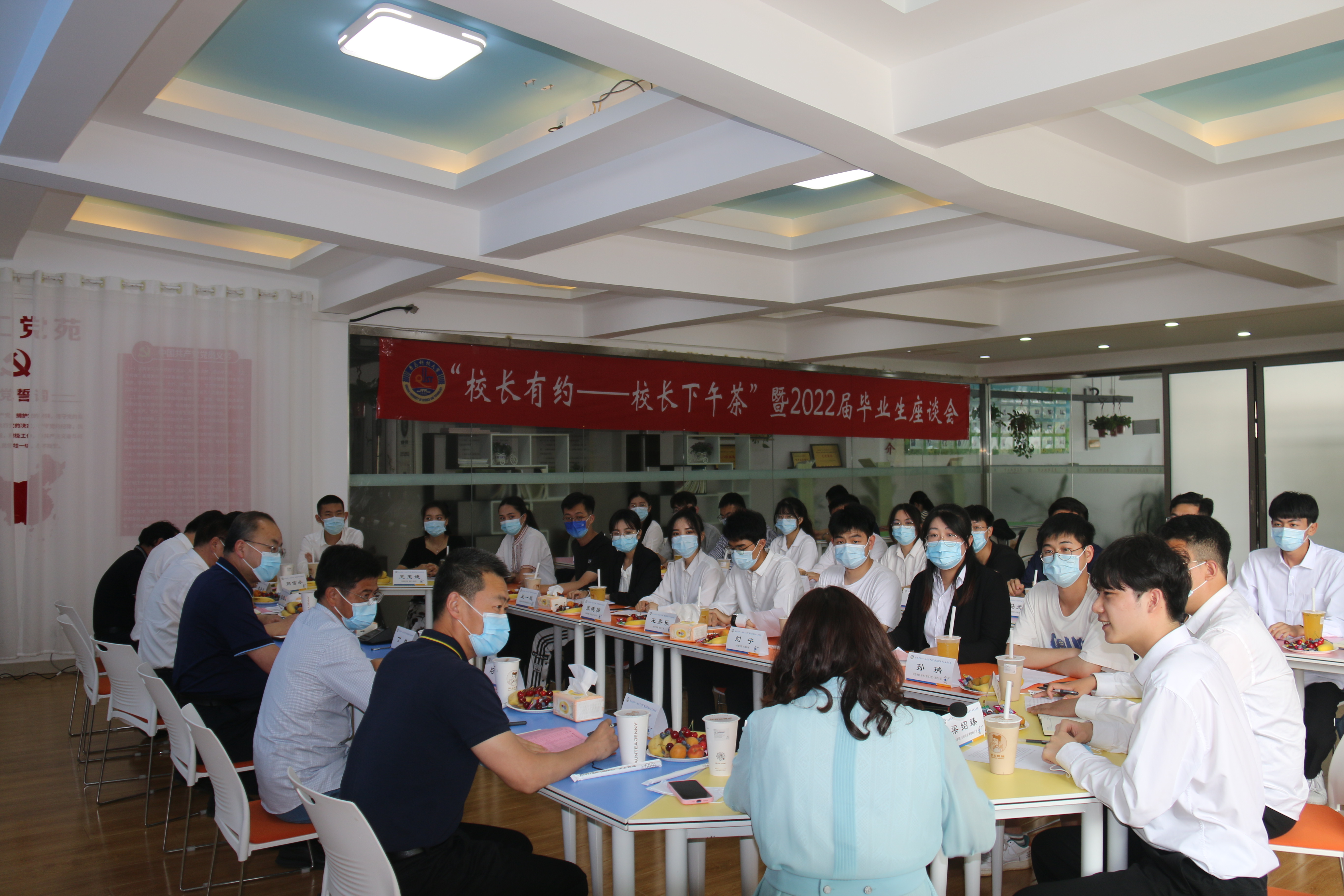 6月8日下午,天游ty8检测中心“校长有约——校长下午茶”暨2022届毕业生座谈会在崂山校区心理中心举行。党委常委、副校长丁林,党委常委、宣传部部长陈刚出席会议并讲话,座谈会由学生工作处副处长王丽主持。