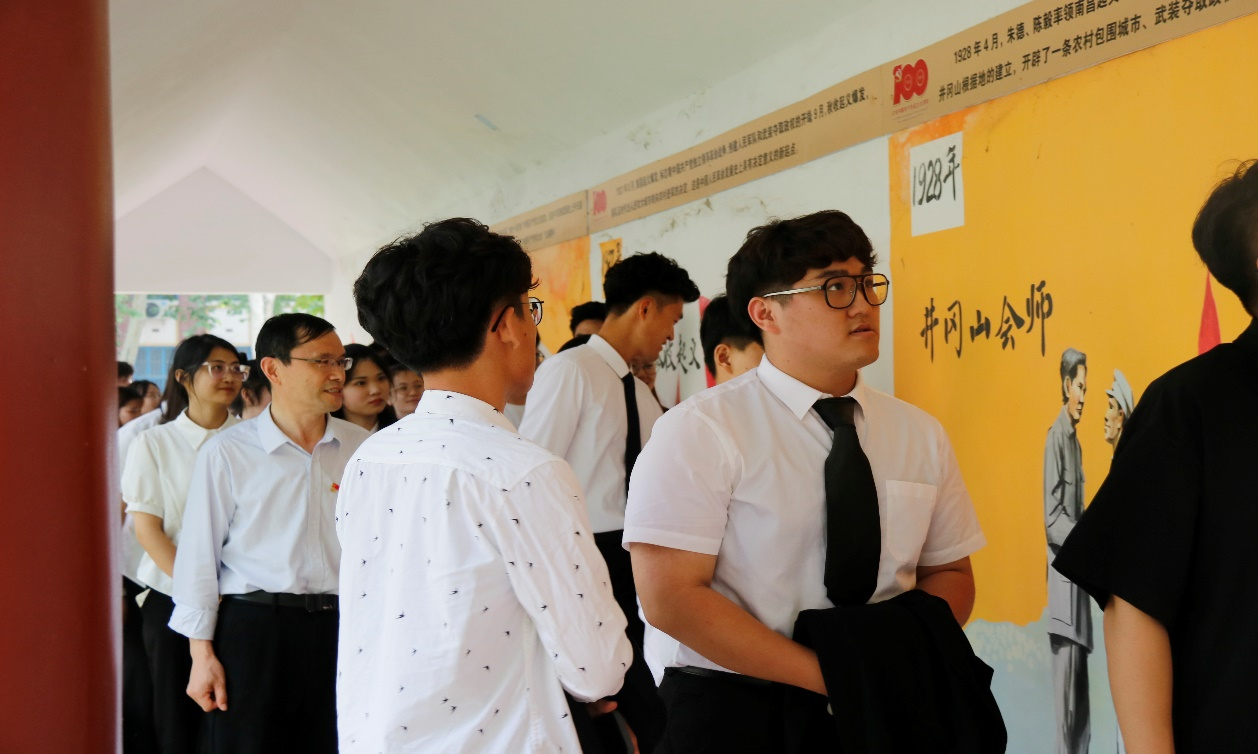 全体党员随后赴学校党史百米文化长廊进行使命打卡,留住青春记忆,明确青年使命,彰显化样青春。学院毕业生党员表示,作为青年一代要立大志、明大德、成大才、担大任,不负学校、学院、老师的培养和期待,让青春在为祖国、为民族、为人民不懈奋斗中绽放绚丽之花。最后毕业生党员在一政楼前进行合影留念。
