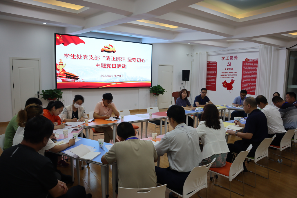 为持续推动广大党员干部,特别是年轻干部提高廉洁意识,6月29日,学生处党支部在“五有”学工党苑活动室召开“清正廉洁 坚守初心”主题党日活动,党委常委、副校长丁林以普通党员身份参加活动,支部副书记王丽主持活动。