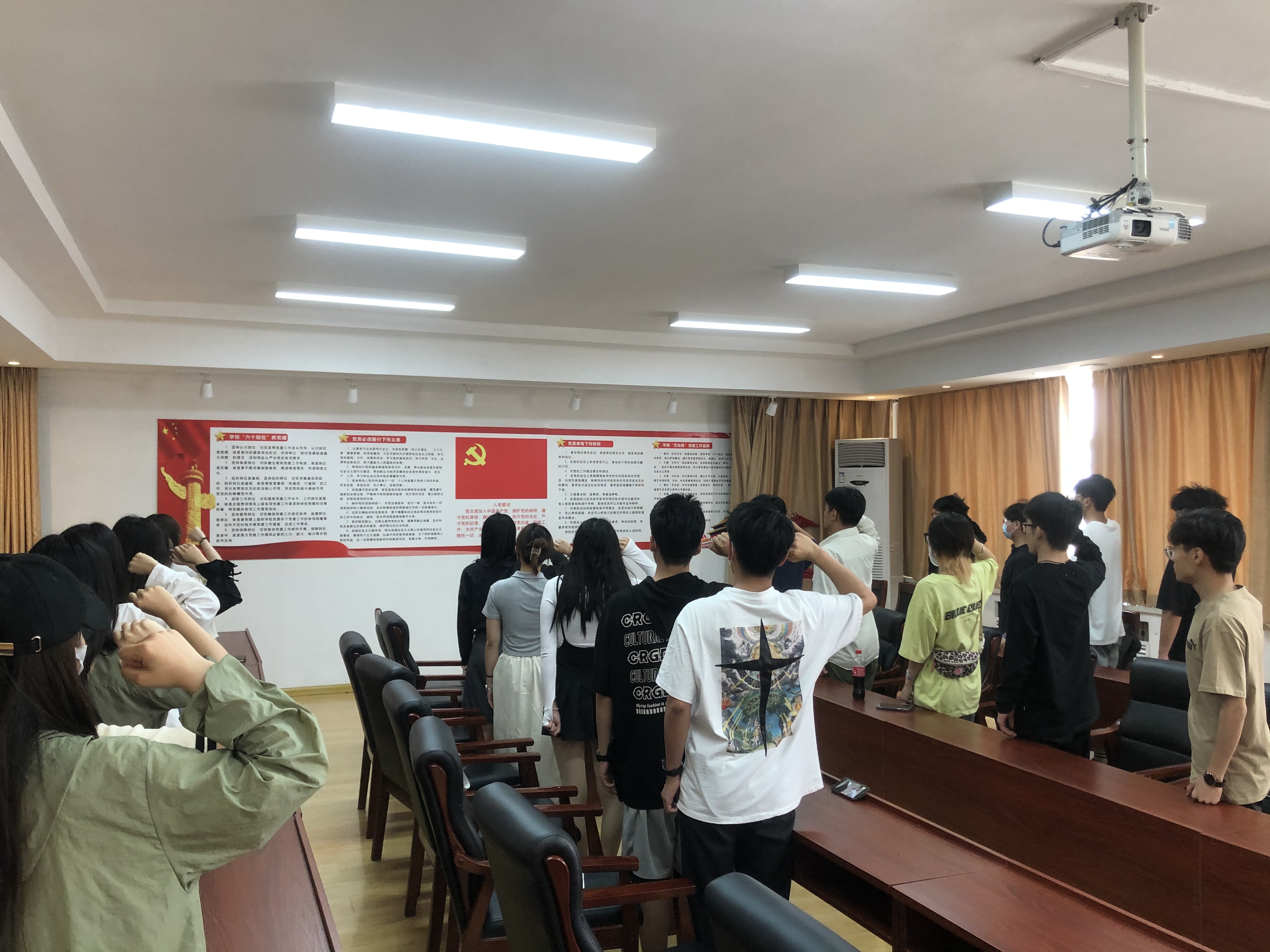 党旗引领铭初心,使命在肩踏征程。学院以“初心永向党,筑梦新征程”、“弘扬爱国主义精神,坚守初心勇担使命”为主题开展了毕业生党员“最后一堂思政课”,希望毕业生能以时代的精神涵养家国情怀,以实现“大我”的格局担当时代使命;毕业生党员面向党旗庄严宣誓,重温入党誓词,告诫党员们要守初心、保本色、担使命;制定文明离校倡议书,希望毕业生党员增强责任意识和服务意识,在文明离校中发挥表率作用。