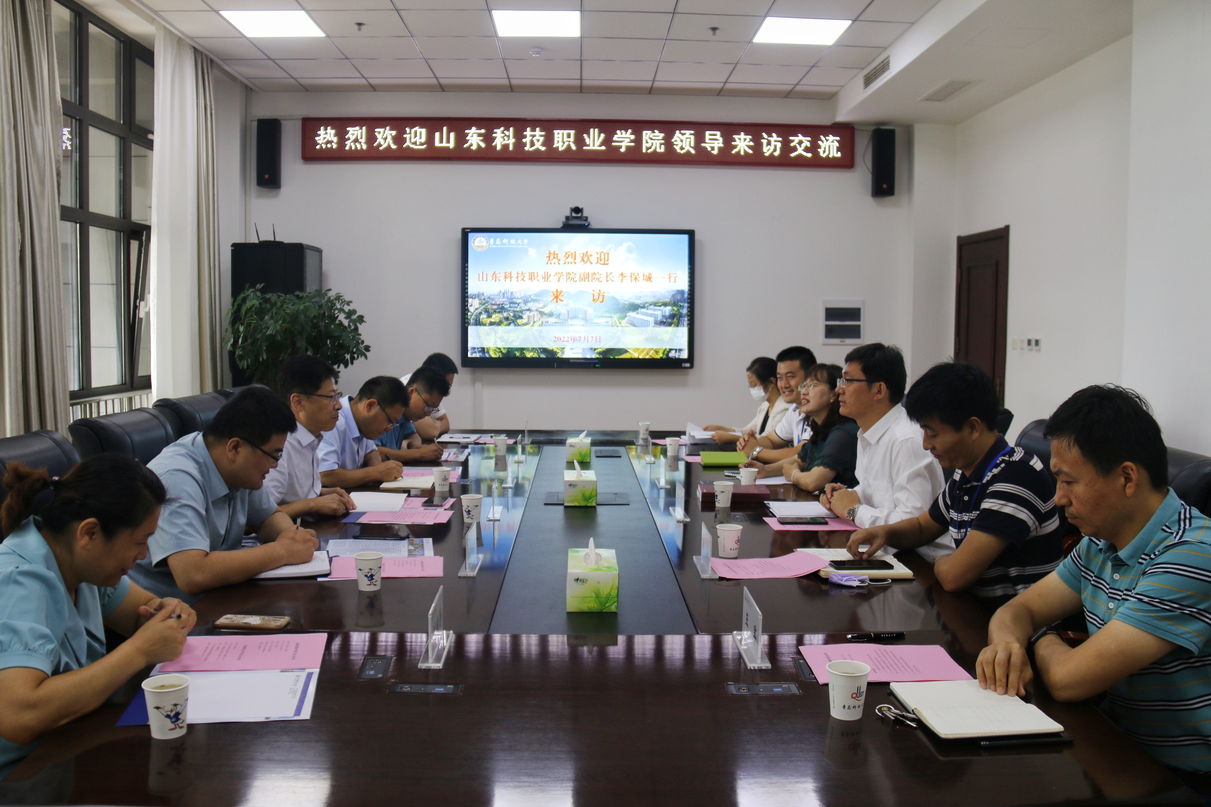 7月7日,山东科技职业学院党委委员、副院长李保城一行来校座谈交流。学校党委常委、副校长丁林会见了李保城一行,学生工作处、校团委和信息学院相关负责人出席座谈会,会议由学生工作处副处长王丽主持。