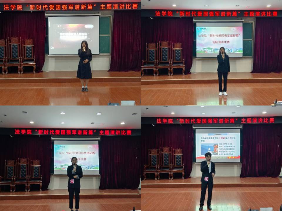 拳拳爱国意,浓浓赤子心。为激发大学生关心国防、热爱国防、建设国防、保卫国防的热情,引导青年学生厚植家国情怀,9月30日晚,法学院于弘毅楼A201举办“新时代爱国强军谱新篇”爱我国防主题演讲比赛。