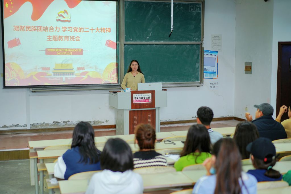 10月16日,中国共产党第二十次全国代表大会在北京隆重开幕,万众瞩目,充满期待。为了让少数民族青年大学生坚定理想信念,进一步激发他们的爱党、爱国热情,更深刻地领会党的二十大精神。10月25日,学校少数民族学生工作办公室在崂山校区明德楼214教室,以线上线下相结合的方式组织开展“凝聚民族团结合力,学习党的二十大精神”主题班会,少数民族专职辅导员及崂山校区20余名新疆籍少数民族学生代表参加了此次活动。