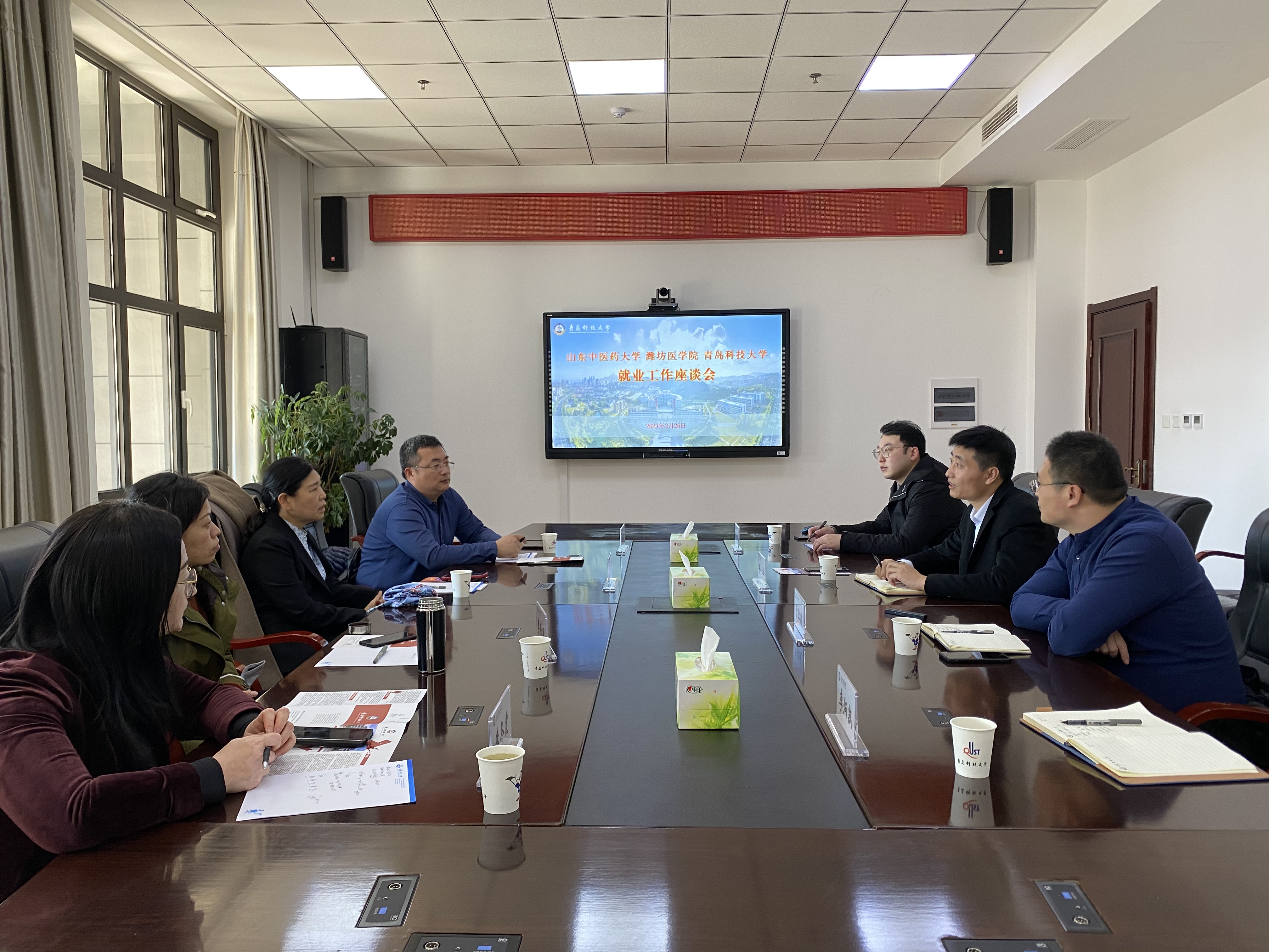 2月26日下午,山东中医药大学、潍坊医学院与天游官网就业工作座谈会在崂山校区综合服务楼2015会议室举行,三所兄弟高校的就业工作部门负责人就如何做好高校毕业生就业工作进行了深入研讨。