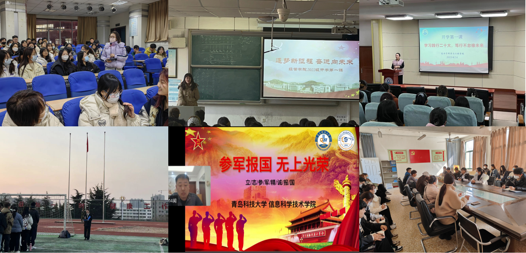法学院充分发挥学生在“开学第一课”中的主体作用,立足学生实际,组织学生结合寒假社会实践感悟,分享“我眼中的二十大精神”,引导学生坚定理想信念。经济与管理学院开展“逐梦新征程·奋进向未来”系列教育活动,深入学习宣传贯彻党的二十大精神,鼓励学生积极参与学雷锋日活动,争做有理想、敢担当、能吃苦、肯奋斗的新时代好青年。高分子科学与工程学院在学生中扎实开展了《学习践行二十大,笃行不怠橡未来》“思政”第一课,引导学生坚定理想信念,科学规划聚心力,锐意进取启新程。信息科学技术学院、大数据学院举行升国旗仪式暨国旗下的思政课,召开“征兵入伍动员部署会”,强化爱国主义教育,引导学生将个人命运与国家发展有机结合。高密校区分年级、层次、专业为全体学子讲授2023年春季学期“开学第一课”,围绕党的二十大、网络安全、公共卫生等方面进行宣讲,加强学生思想政治教育。