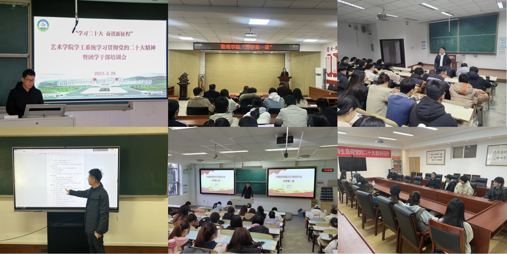 2023年春季学期伊始,为贯彻落实党的二十大精神和习近平总书记关于教育的重要论述精神,按照学校部署安排,各学院(校区)结合工作实际,围绕爱国主义教育与思想引领、生命健康安全教育、诚信教育、就业指导等,统筹安排“开学第一课”133场,为扎实有效地推进新学期各项学生工作,创建平安、和谐、健康的校园环境奠定了良好基础。