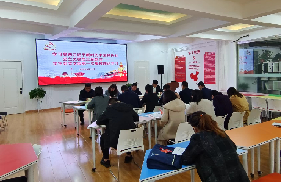 4月21日下午,学生处党支部在“五有”学工党苑活动室开展集体学习,党支部全体党员参加会议,学生处党支部书记王丽主持会议。