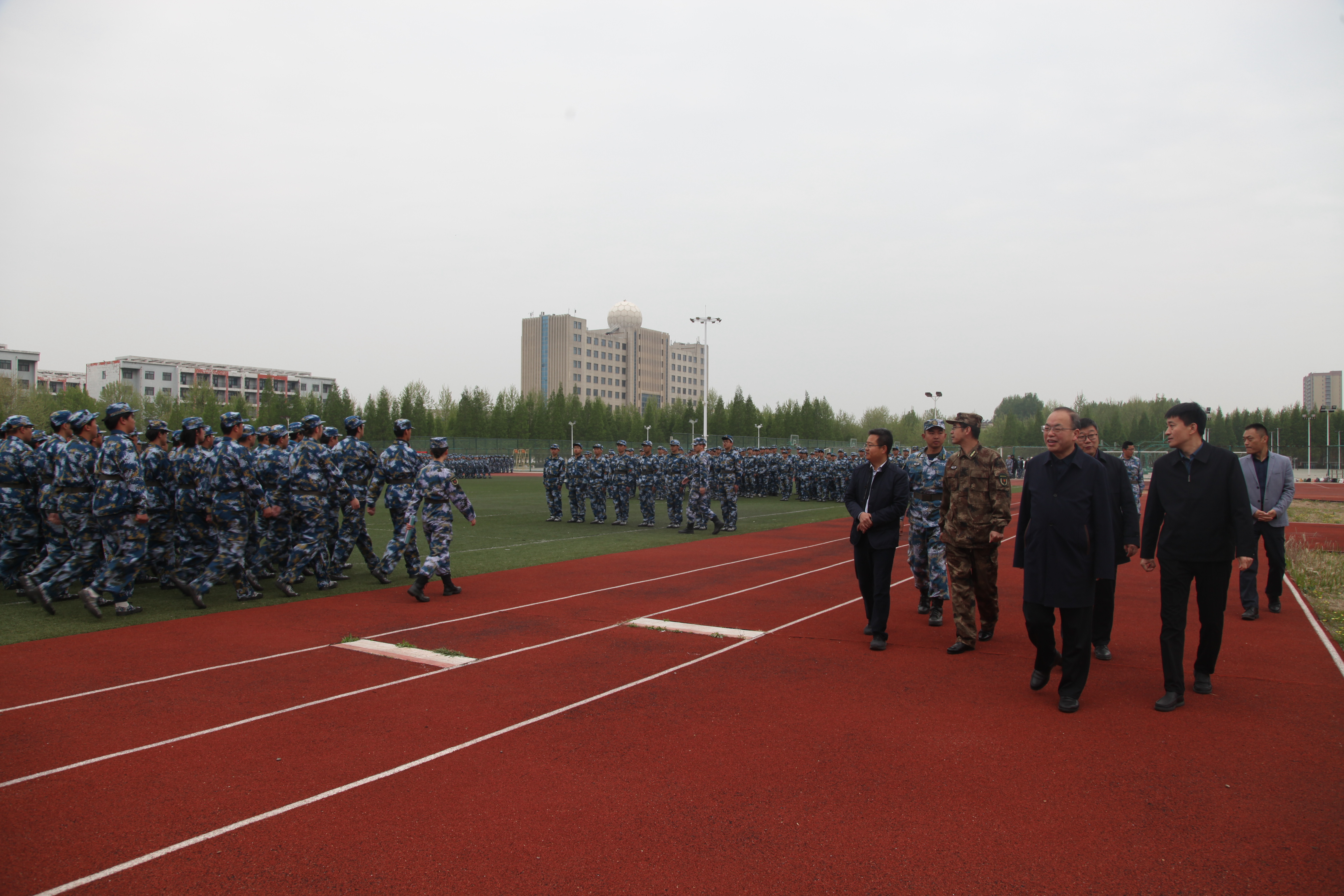 在和教官交流时,他对全体教官严格细训、科学施训表示衷心的感谢。他要求学校各部门要高度重视学生军训工作,把学生安全放在首位,把工作做实做细,确保高效率正规化完成军训任务。