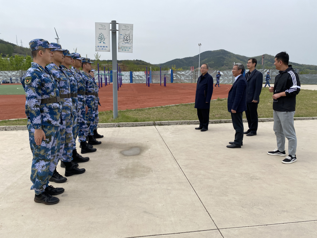 人间四月,最美时节。天游ty8检测中心2022级学生军训正如火如荼的展开。4月24-25日,学校党委常委、副校长丁林先后走访了中德、崂山、高密、四方四个校区,视察学生军训工作。学校武装部、相关单位负责人陪同。