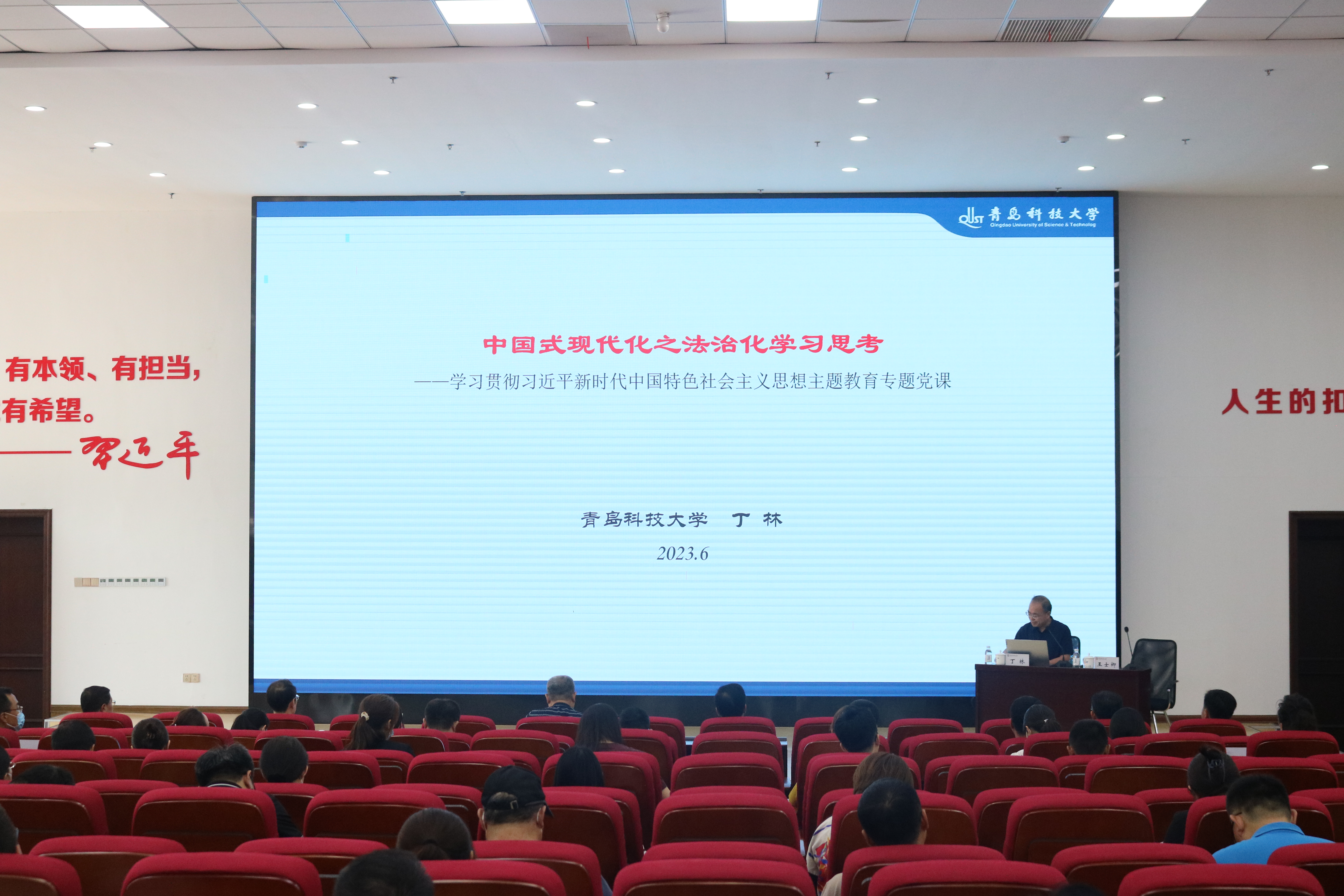 6月13日,学校党委常委、副校长丁林在崂山校区团学报告厅讲授学习贯彻习近平新时代中国特色社会主义思想主题教育专题党课。后勤处、学生处、团委、艺术学院、体育学院全体教工党员参加了此次学习。党课由后勤管理处党总支书记王士卿主持。