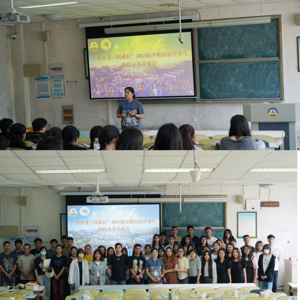 为传递和分享优秀毕业生的成功经验,充分发挥优秀朋辈的思想引领、榜样示范作用,6月13日下午,“2023届少数民族毕业生经验分享交流会”在崂山校区弘毅楼103教室举行。少数民族专职辅导员热孜亚、4名少数民族毕业生代表及两校区50余名新疆籍少数民族学生参加活动。