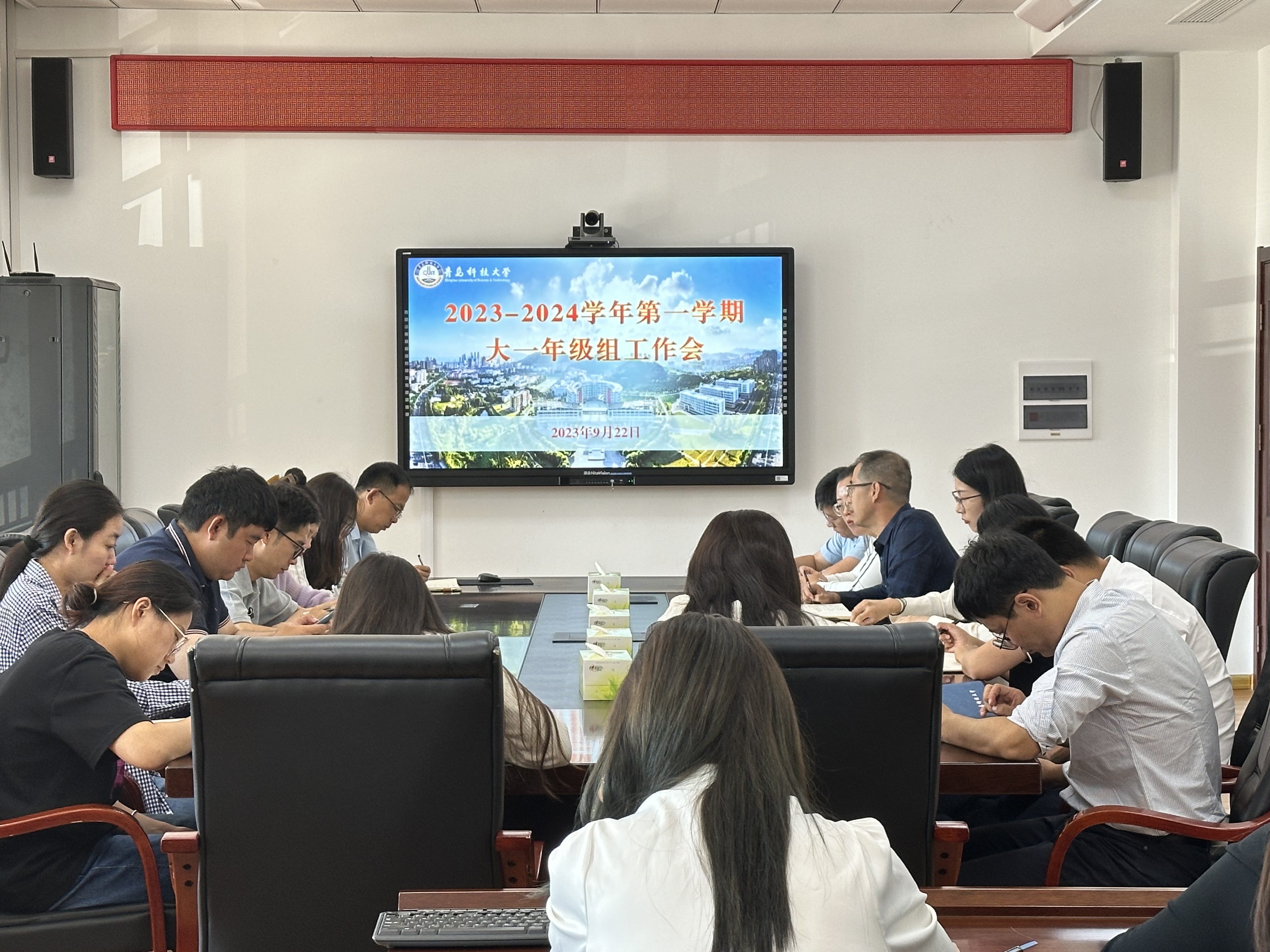 为深入贯彻落实国家关于国防教育工作的指示精神,根据学校2023级学生军训工作方案训练安排, 9月22日,学校大一年级组在崂山校区综合楼2015会议室召开新生专题工作会议,研究部署2023级学生军训(分散)工作。党委学生工作部副部长曹永俊,各学院(校区)大一年级辅导员参加会议。