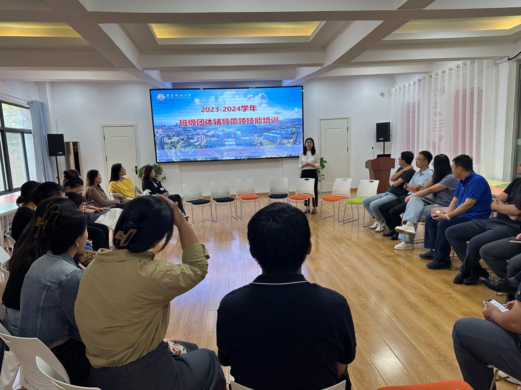 实践教学备课会上,刘璐带领新生辅导员以提高学生班级凝聚力和归属感为目标,共同探讨班级团体辅导方法在学生工作中的应用,并通过体验互动帮助辅导员掌握团体辅导流程,助力实践教学目标的达成。