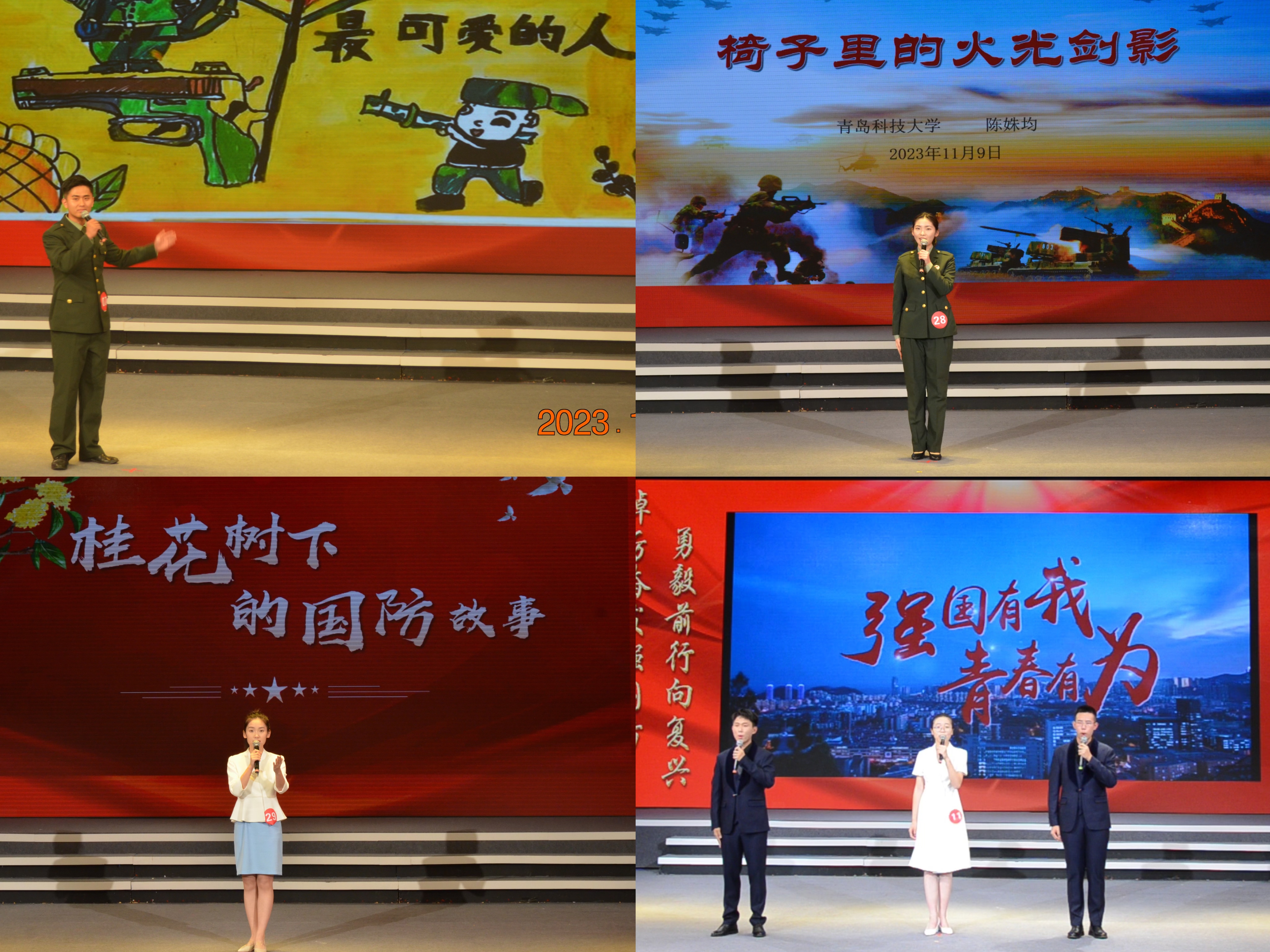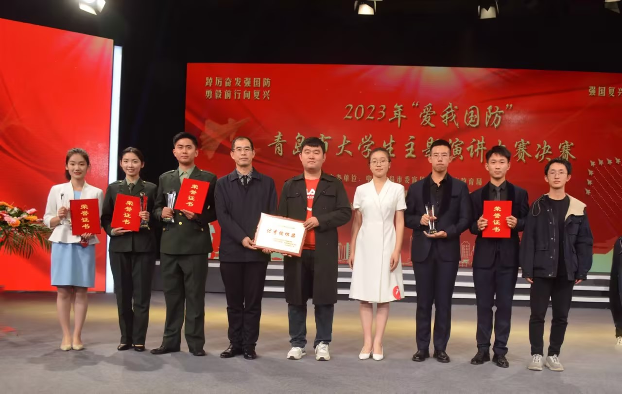 本次比赛由中共青岛市委宣传部、青岛市教育局、青岛市广播电视台、青岛警备区政治工作处主办,大赛以“踔厉奋发强国防,勇毅前行向复兴”为主题,旨在激发大学生国防热情,引导大学生关心国防、热爱国防、建设国防、保卫国防,增强国家意识和国土意识,筑牢中华民族伟大复兴的精神长城。大赛吸引来自全市40所高校的82组选手参加,通过预、决赛的激烈争夺,学校选派的4组选手全部成功入围决赛并获得一等奖1项,二等奖3项的好成绩,获奖与进入决赛选手数量均创历年新高。