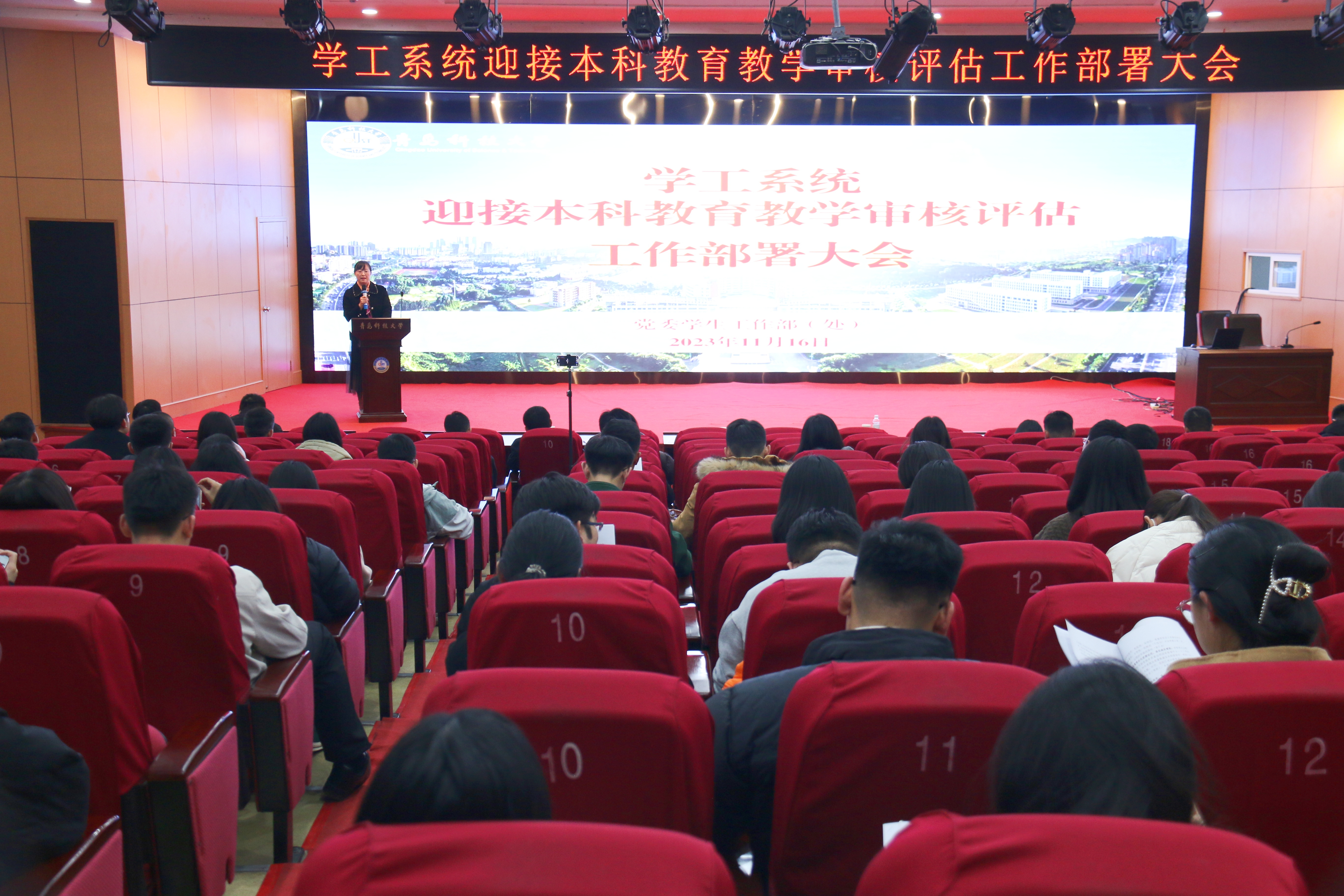11月16日下午,学校在崂山校区英科(第三)报告厅召开学工系统迎接本科教育教学审核评估工作部署大会。党委学生工作部部长王丽出席会议并讲话。