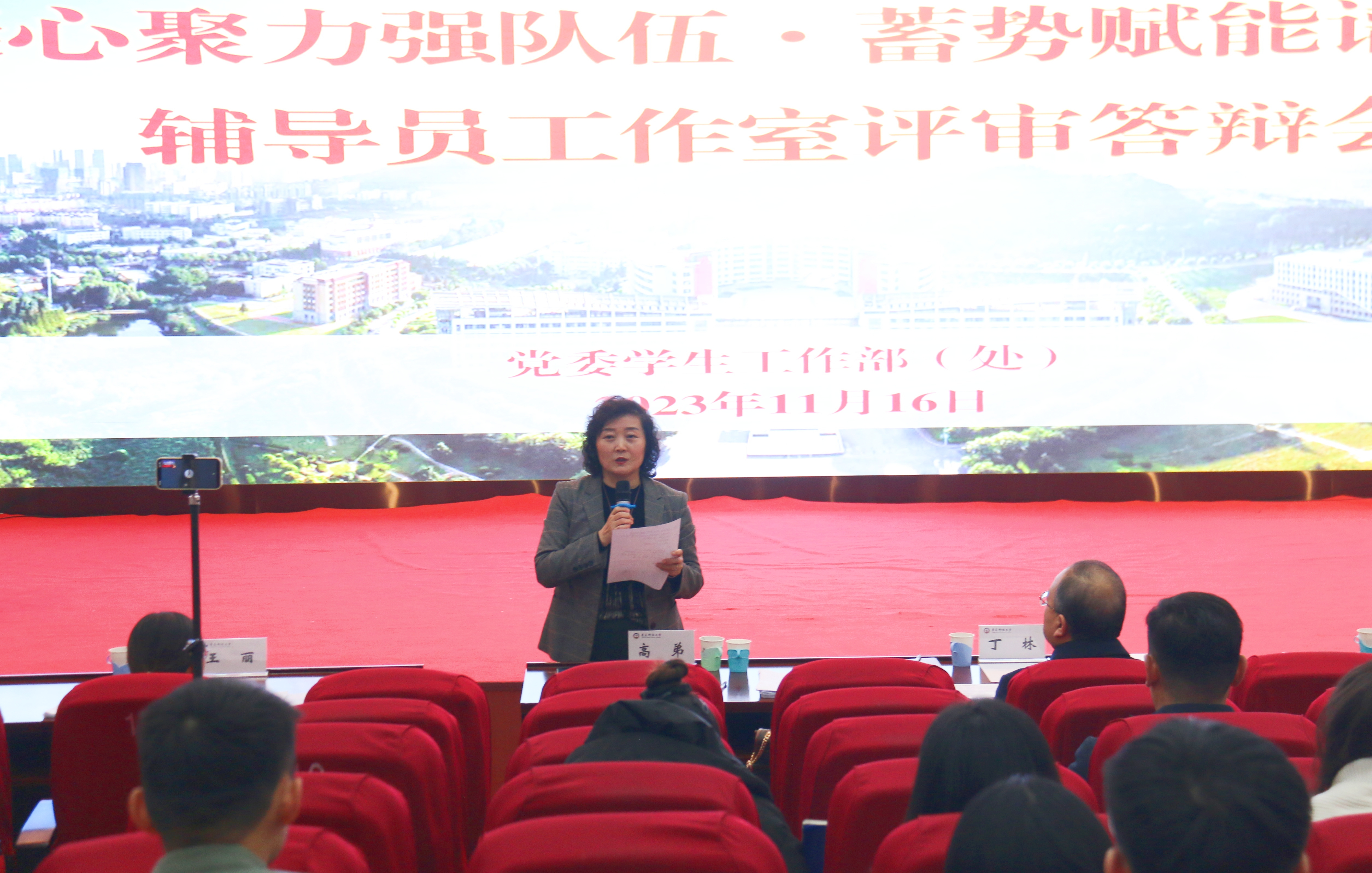 高弟结合各工作室汇报答辩情况进行点评,并提出宝贵建议,一是加强学校统筹谋划、跟踪调度、督促考评,确保工作室建设抓实抓细、落地见效;二是建设选题要聚焦学生教育管理服务的重点、难点、堵点、淤点,以小见大、以微见著;三是结合建设方向和已有基础,大胆创新、积极实践、做出实绩,探索解决实际问题的新思路新方法,强化典型宣传和经验推广;四是凝聚合力、凝练特色,利用工作室搭好平台、建强团队,通过多元化发展、系统化培养、品牌化建设促进学校工作室和辅导员队伍建设提质增效。
