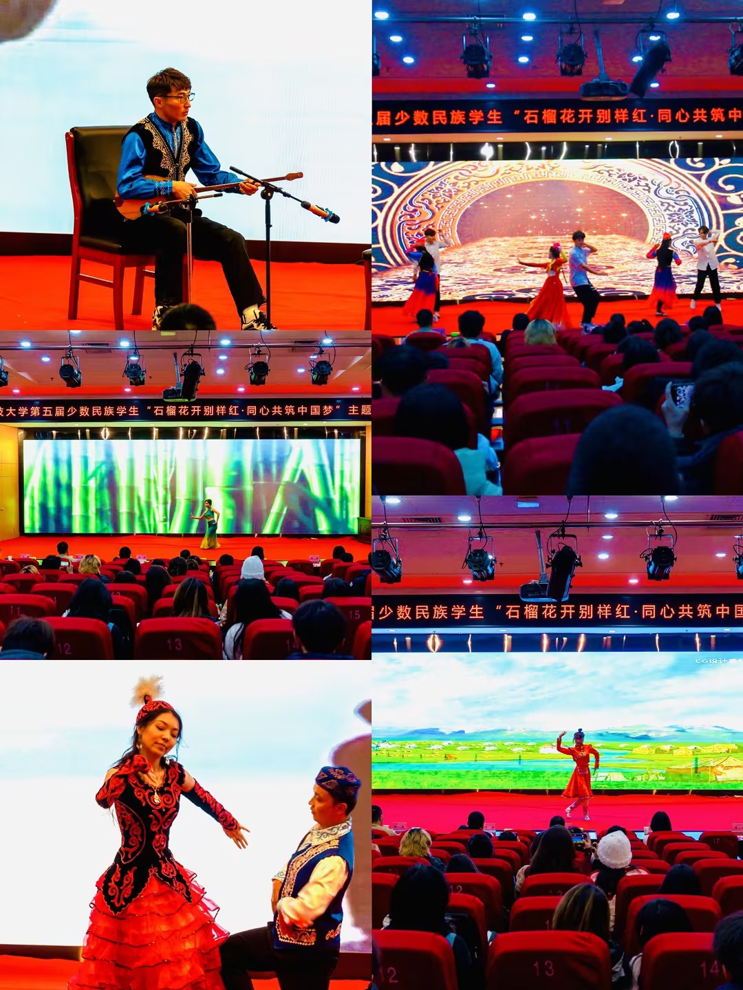 比赛之余,哈萨克族同学们带来了冬不拉舞曲《黑走马》,蒙古族、傣族、维吾尔族等少数民族同学共跳《民族团结一家亲》串烧,用自己的歌舞声讲述民族团结故事,涵育中华民族共同体意识。