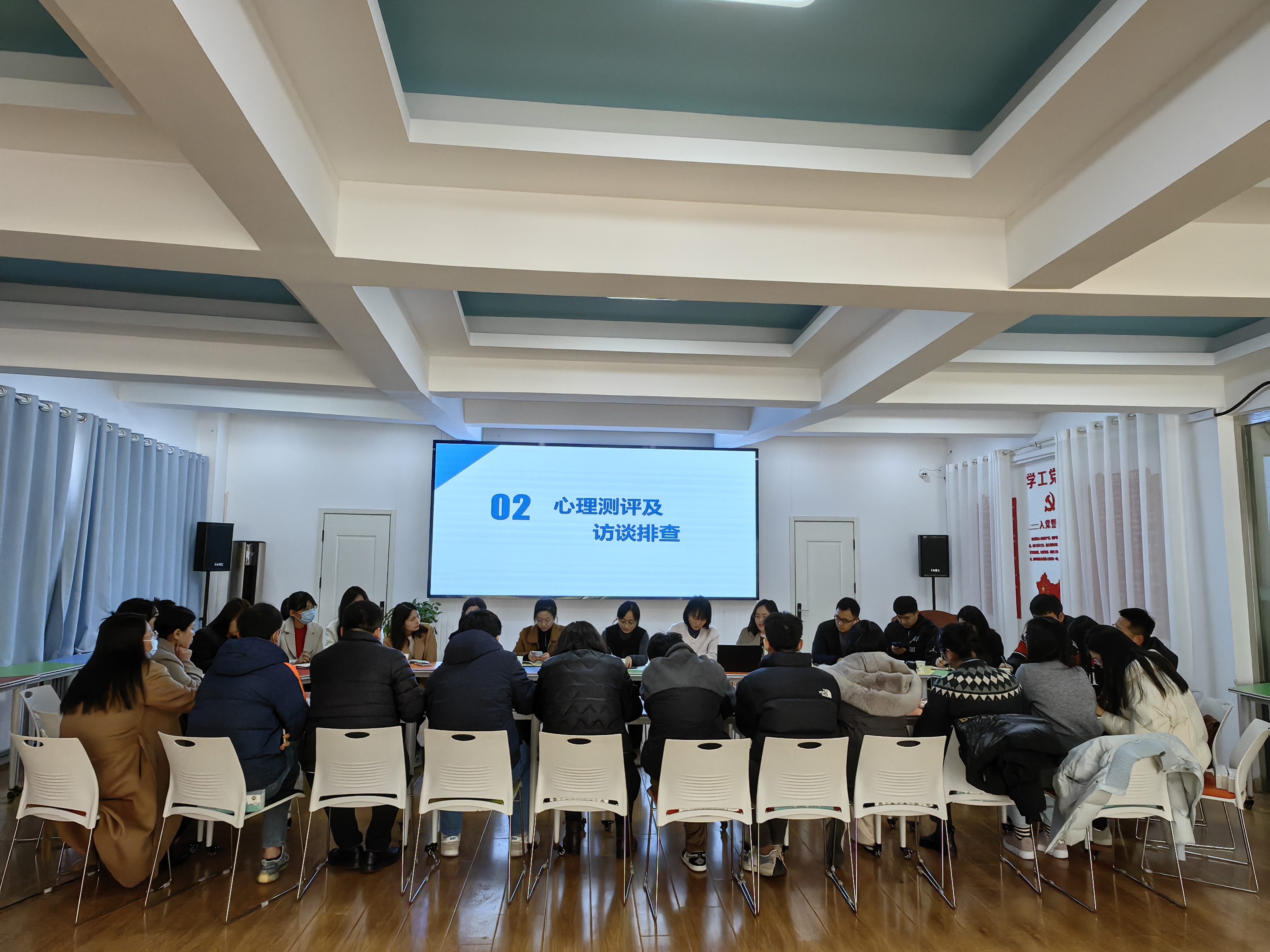 李海玲就2024年心理健康教育工作计划和时间节点做了详细部署。专职教师殷华敏介绍了本学期心理健康素质测评及后续访谈排查工作安排,张岍和王珊分别就“3·25善爱我”心理健康教育月活动安排和团体辅导开展计划做了说明和号召。与会老师就学院以往开展的心理工作和学生心理健康近况等进行了深入交流。