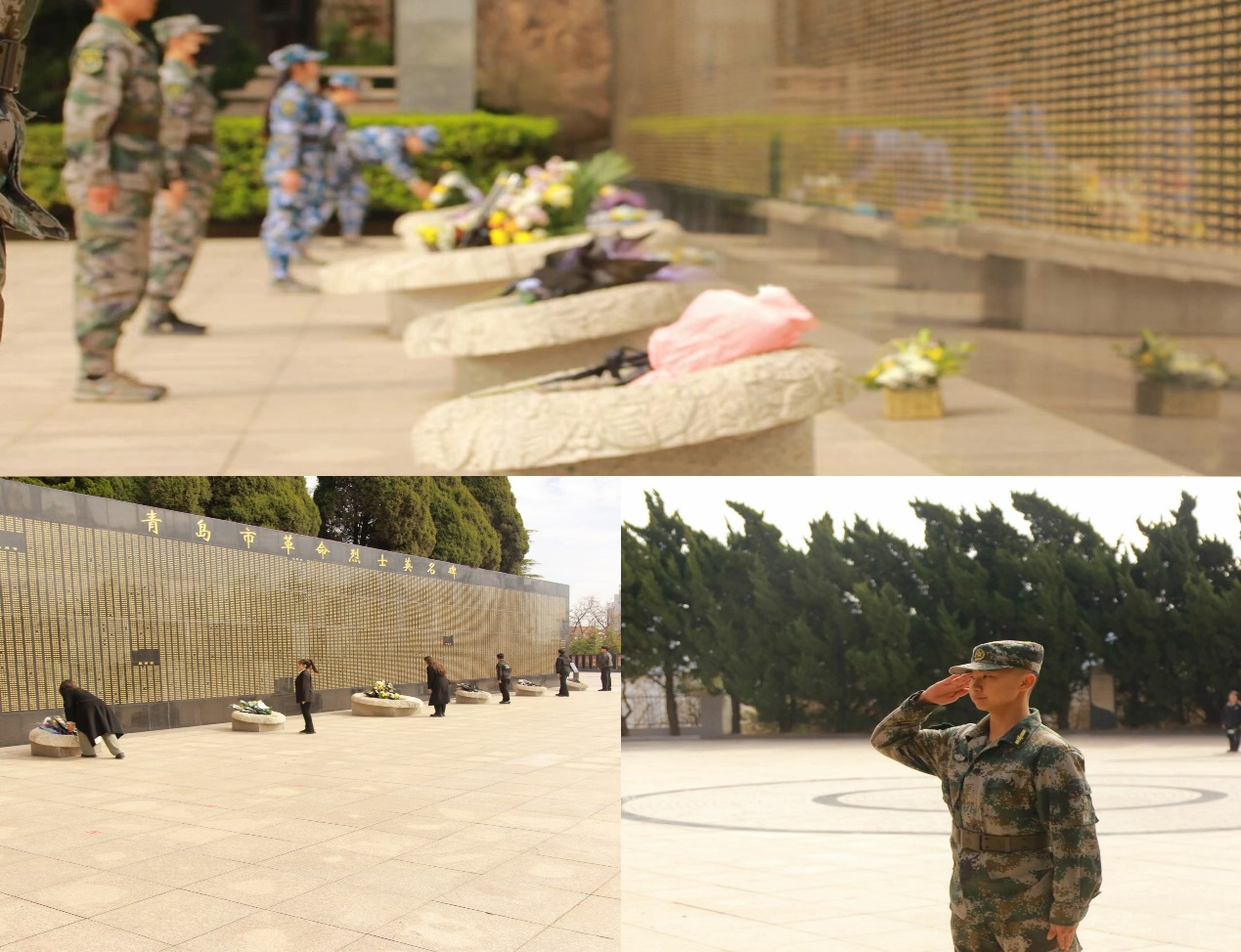 9时整,学校师生同驻青解放军战士、机关工作人员、高中、中小学生列队肃立在市革命烈士纪念馆“山河魂”烈士群雕前,深切缅怀为中华民族独立与解放、为社会主义现代化建设和发展而英勇献身的先辈和烈士们。集体向烈士默哀、宣誓并向烈士献花。在恢宏的国际歌中向烈士们传递哀思。而后带队到革命烈士英名碑前,师生们7人为一组,向烈士献花敬礼。