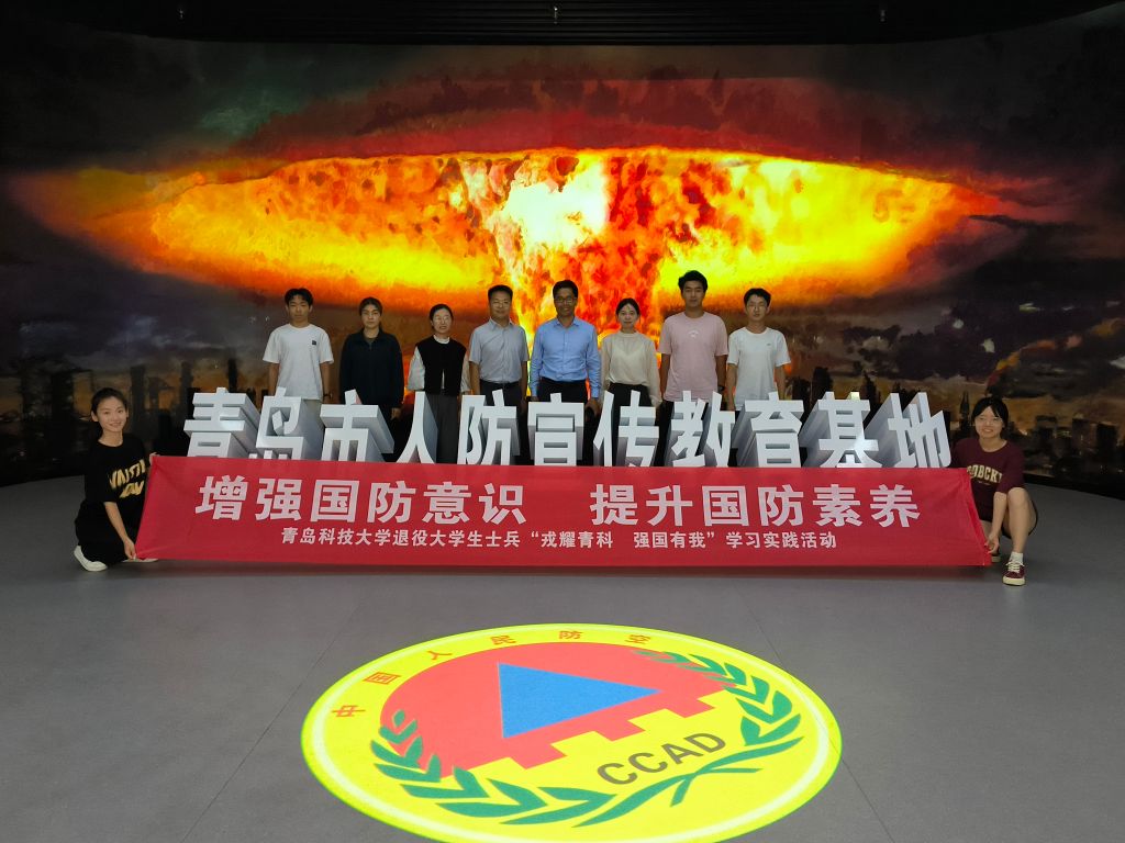 9月30日,在喜迎新中国75周年华诞之际,天游ty8检测中心“戎耀青科”退役大学生士兵同学、“火炬手·爱我国防”宣讲团成员在武装部副部长李春家,辅导员刘福民、王梦珂、郭颖等老师带领下来到青岛市人防宣传教育基地开展国庆主题活动。