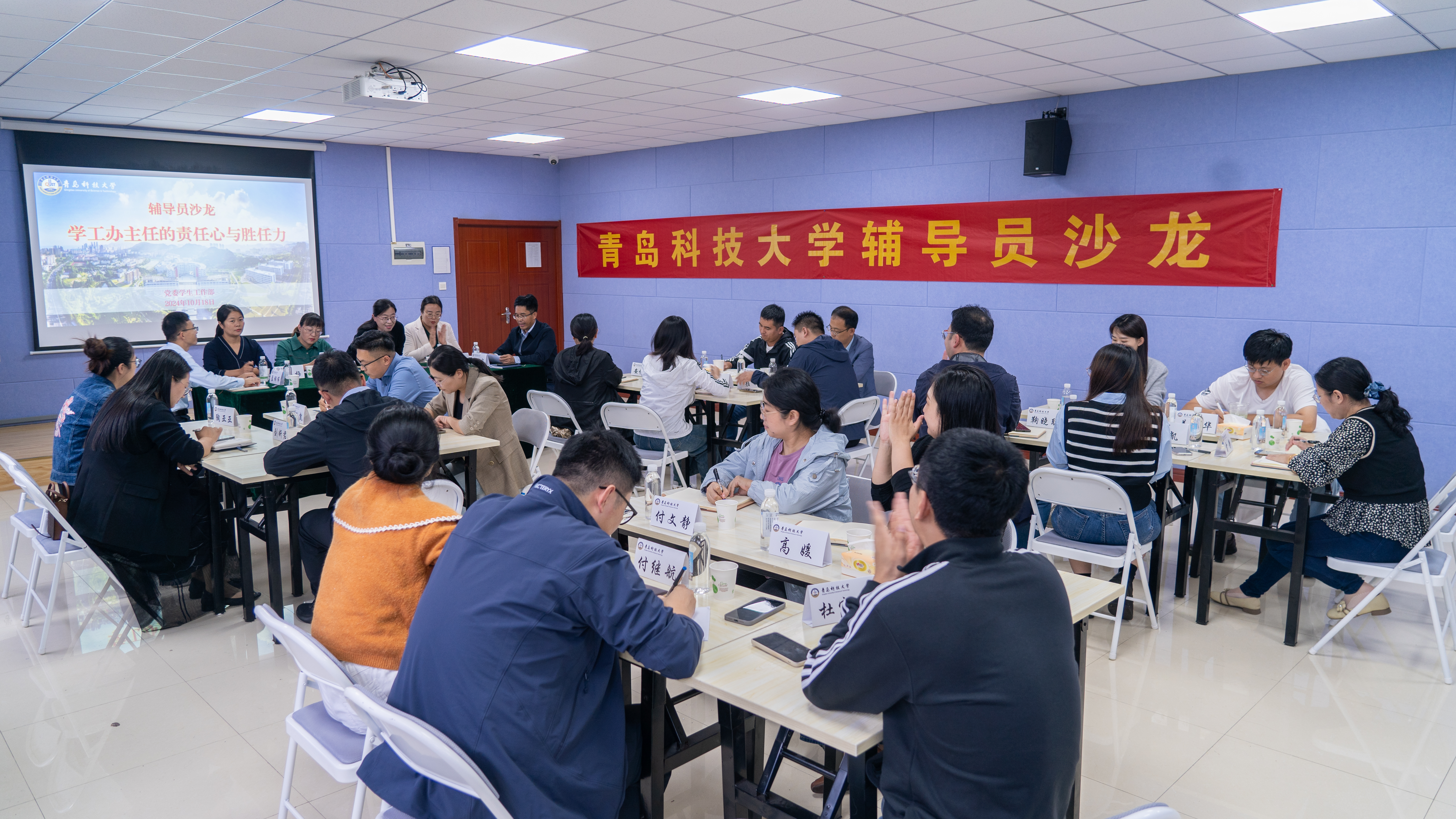 10月18日下午,学校在崂山校区三创中心面向各学院(校区)学工办主任、副主任(主持工作),举办了主题为“学工办主任的责任心与胜任力”的“加油星期五”辅导员沙龙。党委学生工作部部长王丽出席沙龙并讲话。数理学院党委副书记兼副院长李雯雯、法学院党委副书记兼副院长王祥梅、党委学生工作部教育管理科科长郭蒙蒙参加沙龙并进行了工作分享。