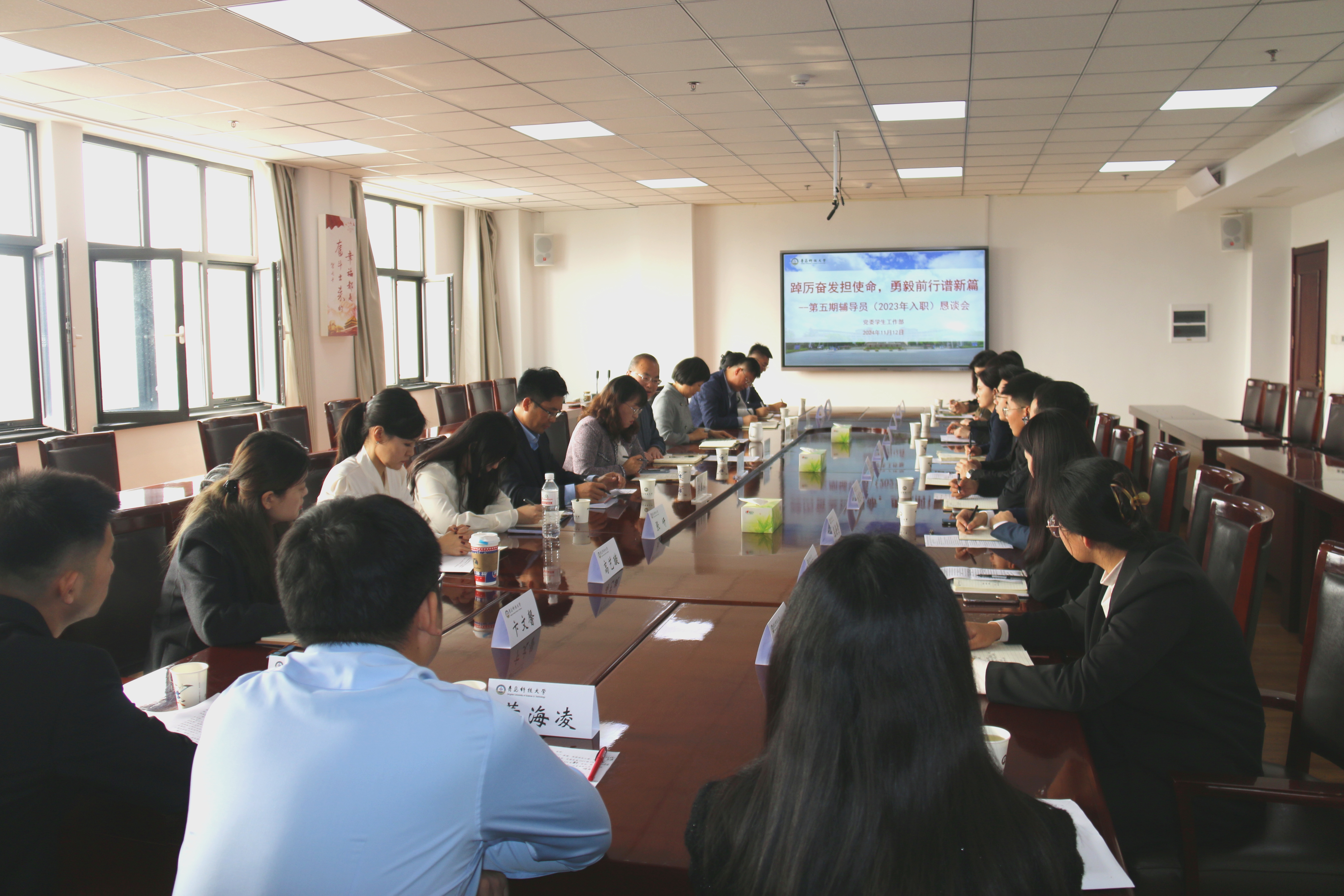 11月12日下午,学校“踔厉奋发担使命 勇毅前行谱新篇”—第五期辅导员(2023年入职)恳谈会在崂山校区综合服务楼3015会议室召开。党委常委、副校长丁林出席并讲话。2023年入职的18名辅导员参加会议。