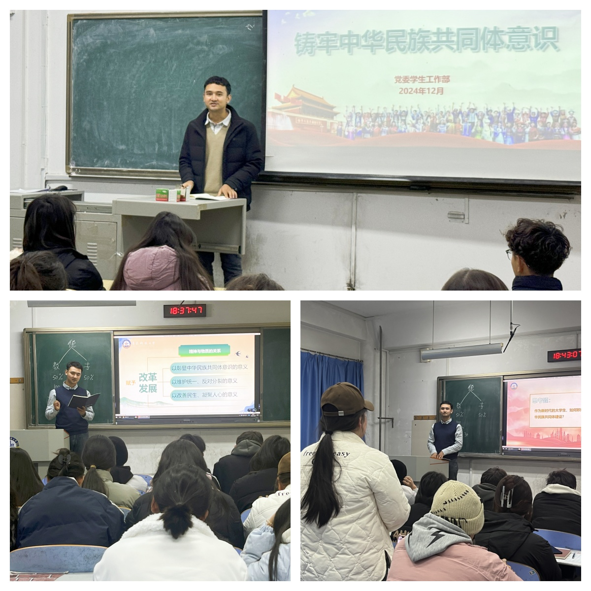 为提高学生法治意识,弘扬宪法精神,铸牢中华民族共同体意识,落实立德树人根本任务,12月3日、4日学校分别在崂山和四方校区组织召开“弘扬宪法精神 铸牢中华民族共同体意识”主题班会。班会由少数民族辅导员凯撒尔主持,2024级44名少数民族预科学生参加。