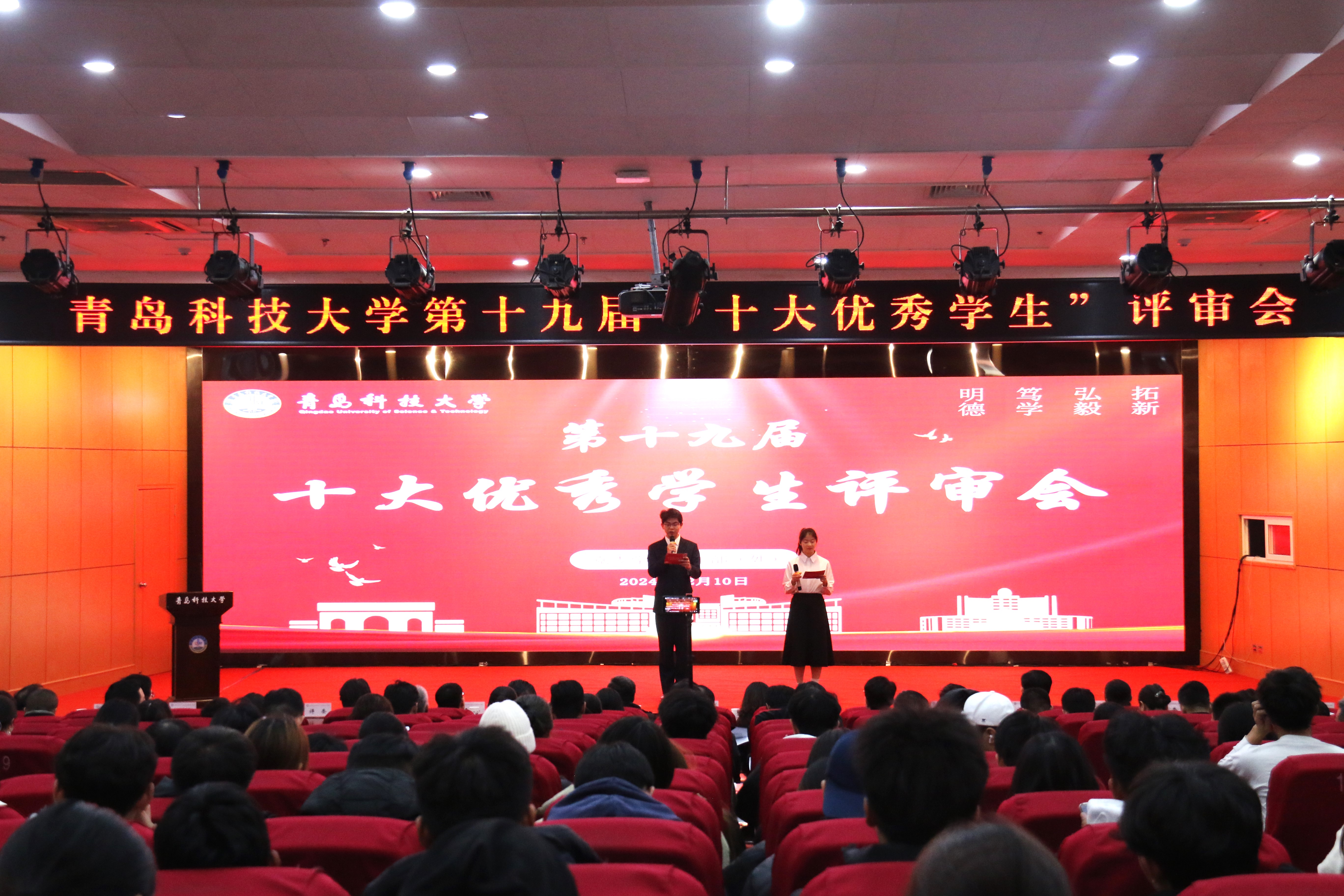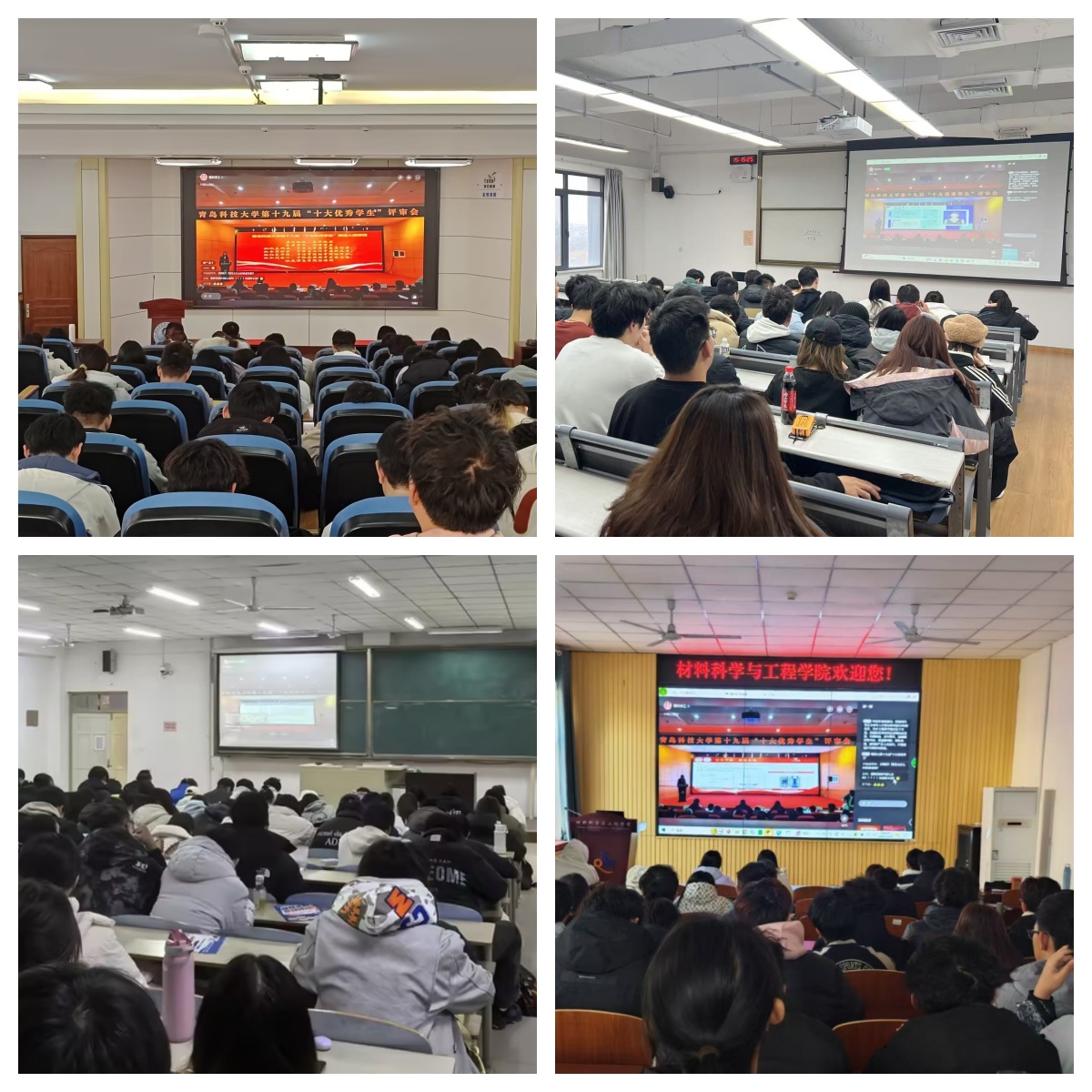 为深入挖掘和表彰大学生先进典型,充分发挥先进典型的示范引领和激励作用,12月10日下午,学校在崂山校区英科报告厅举办了第十九届“十大优秀学生”评审会。由各学院(校区)书记、院长代表,学生工作委员会成员,优秀教师代表,学生代表组成的评审团参加了评审会。四方校区、中德校区、高密校区设立分会场,同步收看直播。