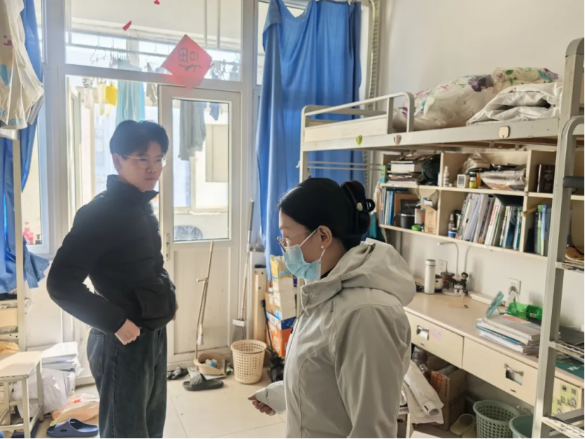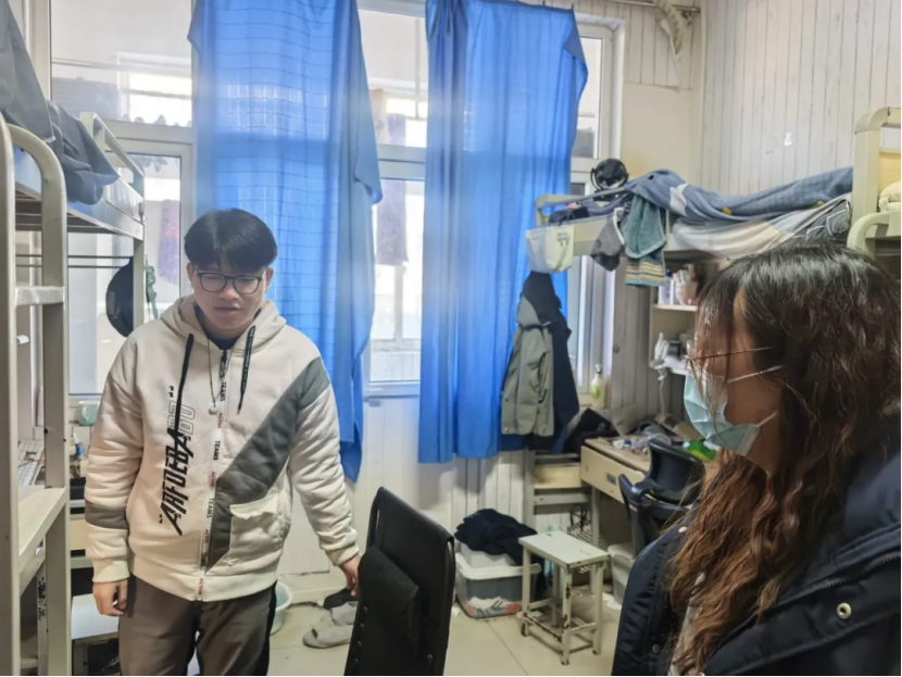 在学生宿舍,老师们检查了宿舍的卫生和安全状况,提醒同学们要注意个人卫生,保持宿舍整洁,避免流感,遵守学校的各项安全规定。此外,老师们还了解了同学们的饮食习惯和作息规律,鼓励他们要保持良好的生活习惯,确保身心健康。