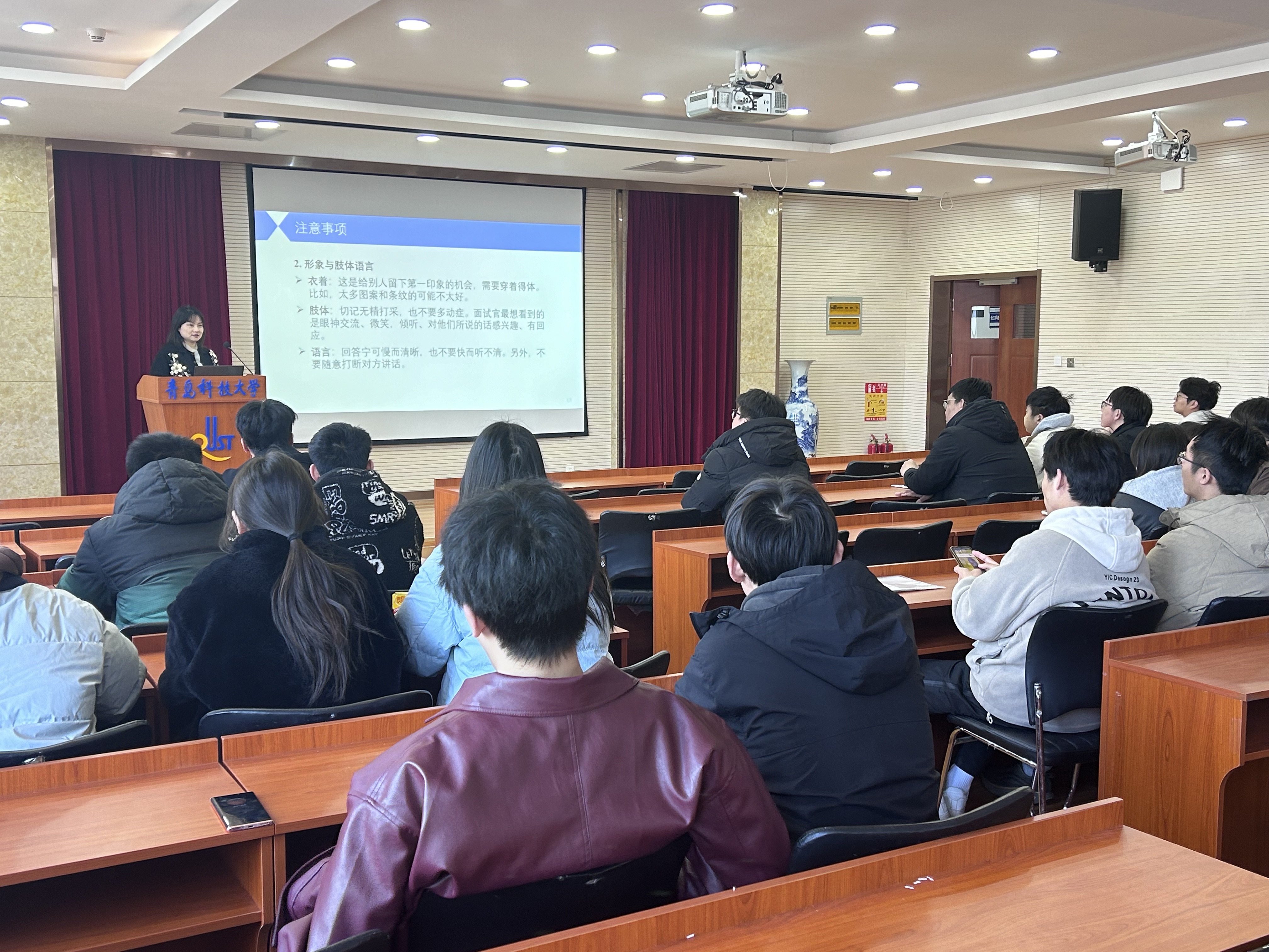 首先,王玲玲聚焦复试全流程进行实战解析,围绕“报道资格审查”“英文能力面试”“抽签答题”“自由问答”四大核心环节展开系统讲解,通过案例剖析与策略指导为考生明晰备考方向。随后,毕业生辅导员郑开齐、陈冬莉对同学们进行了调剂指导,指出在调剂择校时要善抓机遇,根据考研分数所在区间,及时调整调剂策略,通过合理渠道搜集有关调剂信息,争取上岸机会。