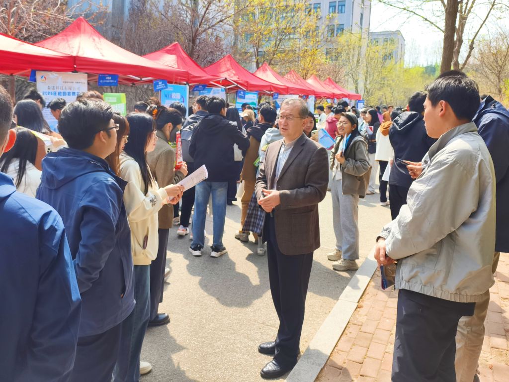 4月11日,学校2025年春季综合类大型双选会在崂山校区三创中心楼前举办。招聘会现场,学院党政班子全体成员、系主任代表、班主任代表、全体辅导员赴招聘会现场从各自角度实地调研企业用人需求,与用人单位深入交流、建立联系,为后期见习实习、项目合作搭建桥梁,同时现场指导学生求职择业、解答同学困惑,为417招聘会做准备。学院党委书记任允晓现场指导辅导员如何更好开展就业工作,提升就业质量。