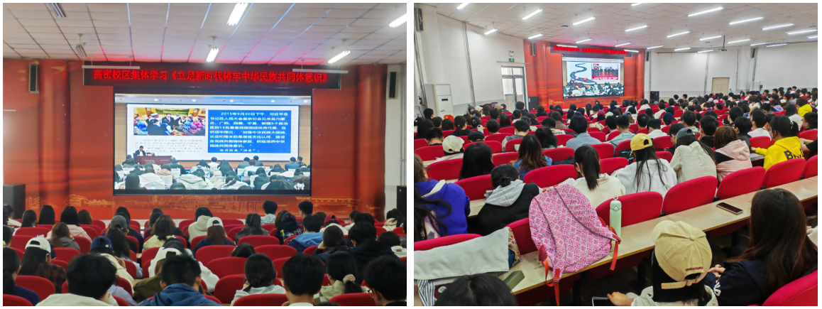 为深入贯彻落实习近平总书记关于民族工作的重要论述精神,进一步强化师生铸牢中华民族共同体意识的思想自觉和行动自觉,近日,高密校区于通德会堂开展《立足新时代铸牢中华民族共同体意识》直播课程专题学习活动,校区学生及全体辅导员老师共400余人参加了本次活动。