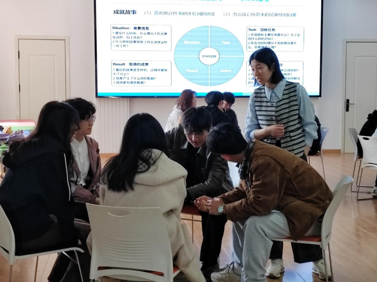 活动在刘璐老师的引导下有序展开。“破冰游戏”环节,学生利用与自己最相像的动物进行自我介绍,这一新颖的方式不仅迅速拉近彼此的距离,打破陌生感,更为后续的活动奠定良好的基础;“国王与天使”角色分配环节,学生互为“国王”与“天使”。通过作为“国王”收到来自“天使”的匿名鼓励与支持、作为“天使”默默关注并帮助自己的“国王”,感受到来自团队的温暖和关怀,深刻体会到如何在团队中扮演好不同角色,为班级的发展贡献力量;“分享学生工作成就故事”环节,学生利用STAR模型回顾并分享学生工作的收获与成长,通过“情境重现—目标拆解—行动复盘—成果总结”,深度剖析在学生工作中的关键成长节点,深刻理解了“个人成就团队,团队托举个人”的共生哲学。