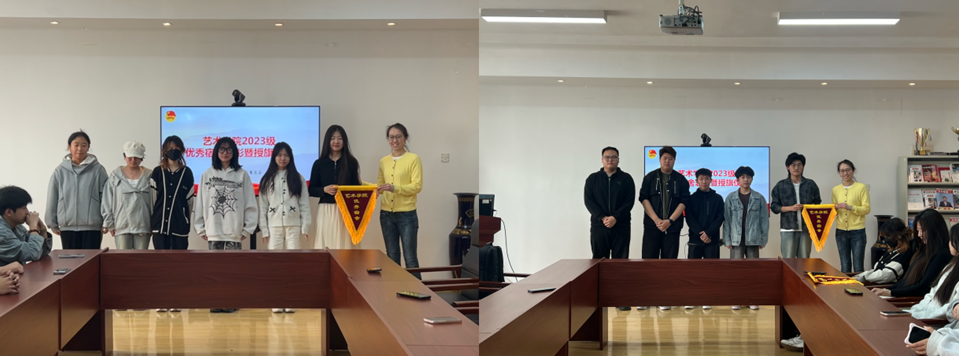 2025年4月17日,艺术学院于213会议室举行2023级优秀宿舍表彰暨授旗仪式,旨在激励学生打造优质宿舍环境,推动宿舍文化建设,增强自律与团队协作意识。艺术学院党委副书记兼副院长丁一宁、2023级辅导员高畅出席活动。南三B208女生宿舍与南十1109连续五次获选优秀宿舍,宿舍卫生整洁,物品整齐有序,成为宿舍典范。