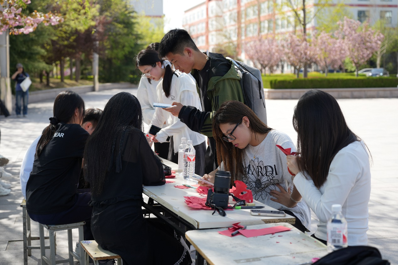4月16日,高密校区"同心共剪·石榴花开"民族团结主题剪纸活动在明镜湖畔举行。活动吸引了校区300多名学生参与,通过非遗技艺诠释民族团结内涵。