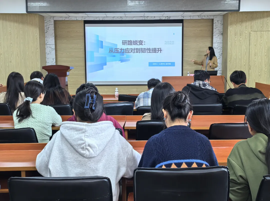 为帮助研究生更好地应对科研挑战、平衡学术生活,4月22日,数理学院特邀心理中心咨询师殷华敏开展“科研压力下心理自洽之道”心理健康调适专题讲座,50余名研究生到场参与活动。