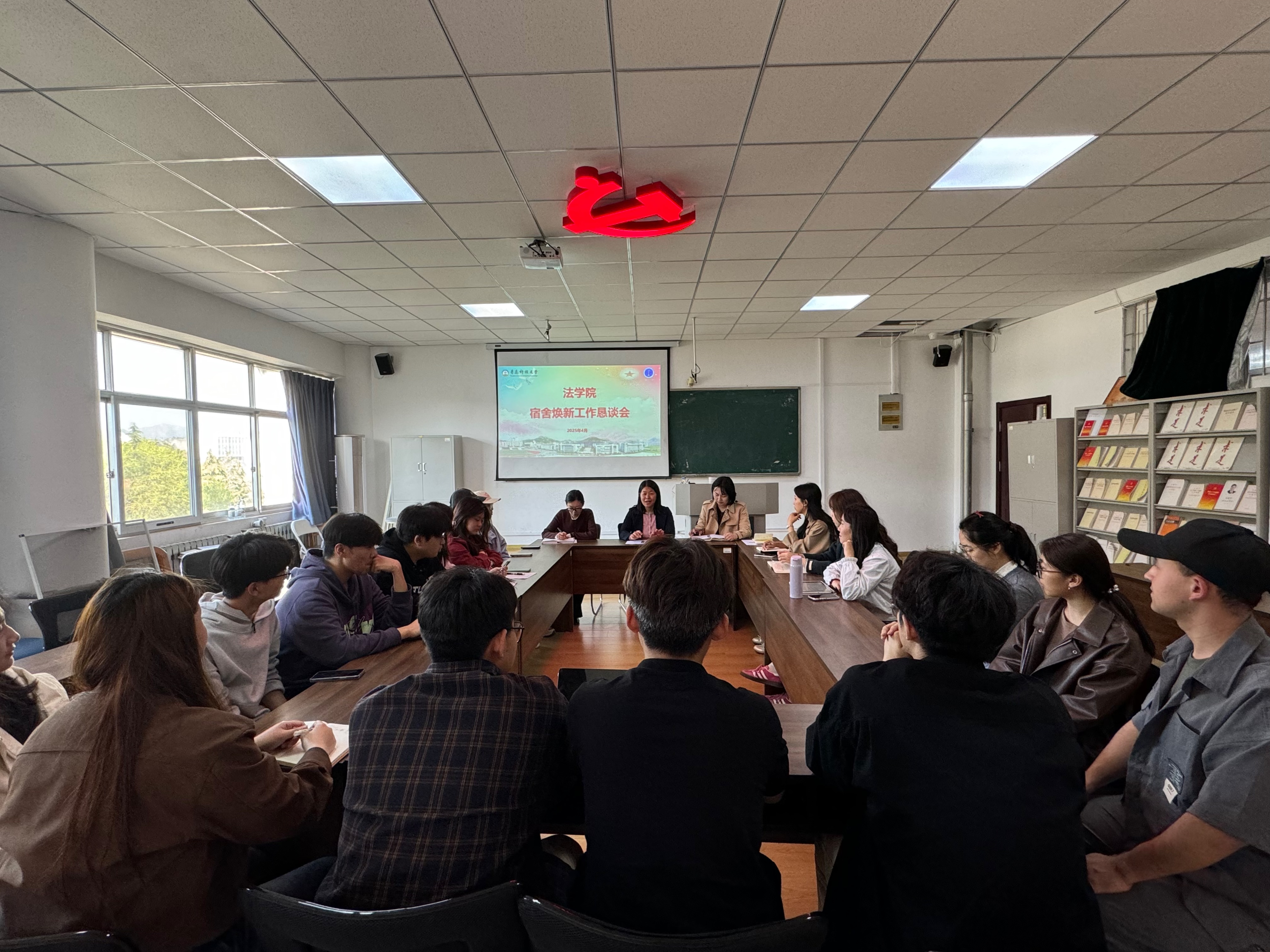 为强化宿舍管理服务,扎实推进宿舍文明建设工作,4月22日下午,法学院开展“宿舍文明建设月”活动暨“宿舍焕新”工作恳谈会。法学院党委副书记兼副院长王祥梅、团委副书记兼学生工作办公室副主任高媛、辅导员王梦珂与第一批“宿舍焕新”学生代表参加会议。