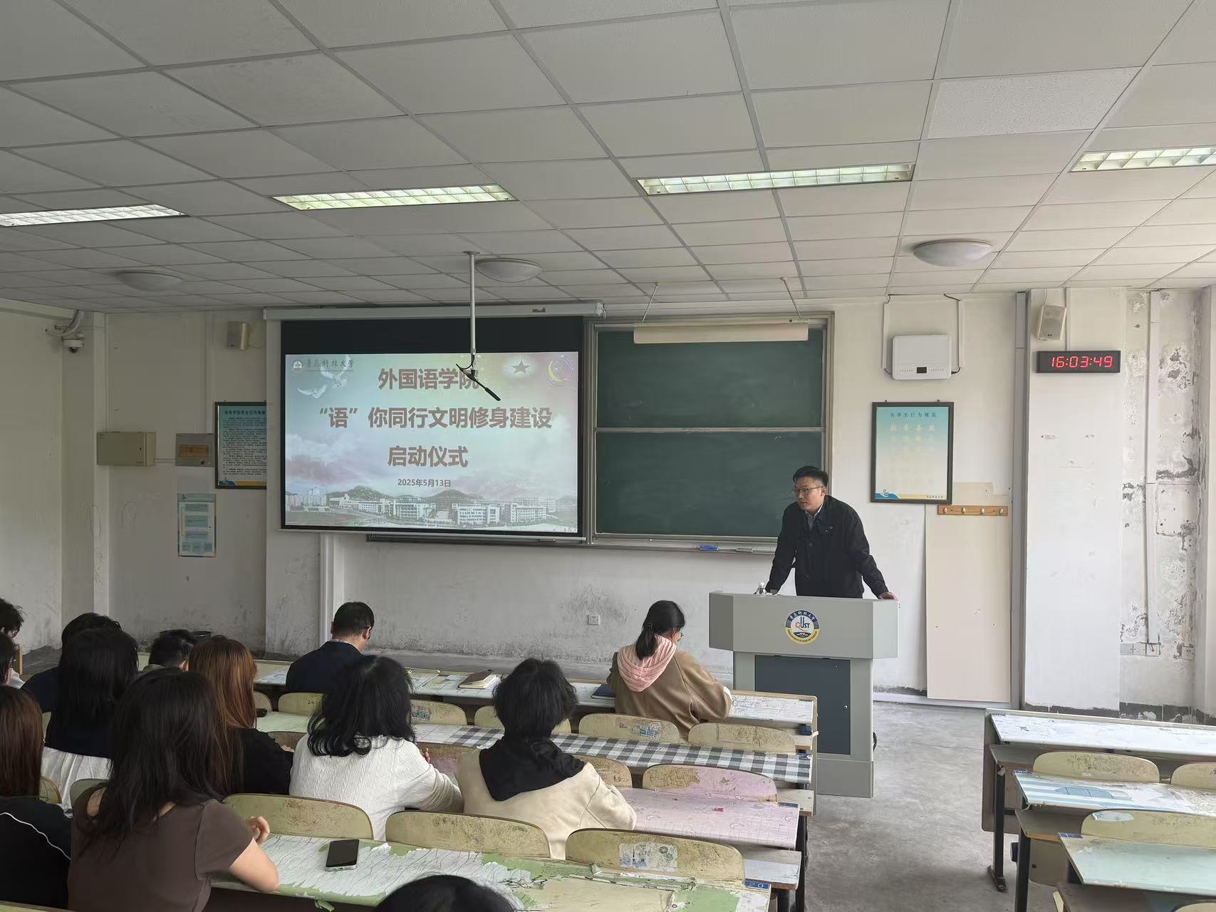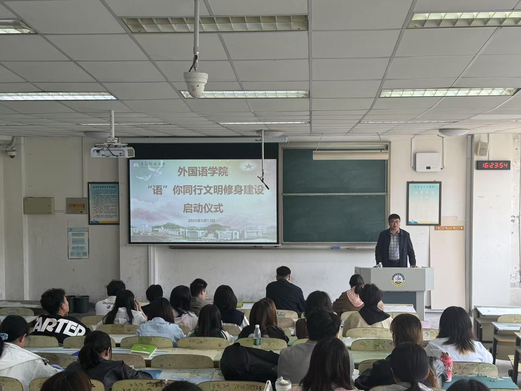 为深入贯彻落实立德树人根本任务,推动“三全育人”走深走实,外国语学院于5月13日启动“语”你同行文明修身建设,学院党委副书记兼副院长马寒、团委副书记兼学工办副主任王玉凯、辅导员马昆及学生代表参加活动。