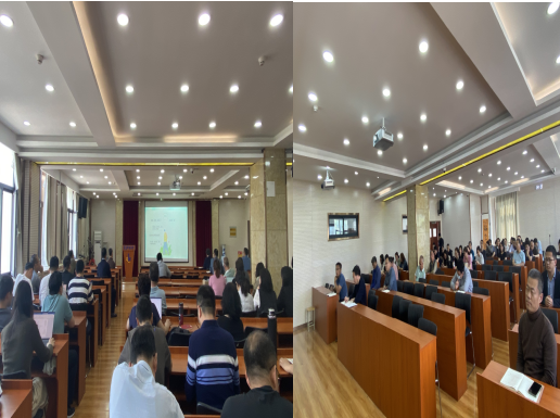 会议第二阶段,邀请校心理中心殷华敏老师进行研究生心理专题培训,研究生各班学生干部、心音使者及研究生会成员代表100余人参会。殷华敏结合自身经历,以一位博四学生的视角,向同学们分享是如何在压力之下调整自己的心理和生活的状态。最后她指出要运用积极认知调整心态,构建社会支持网络,主动寻求同学、老师的帮助,学会在困境中借助他人力量,保持健康的生活方式缓解压力。