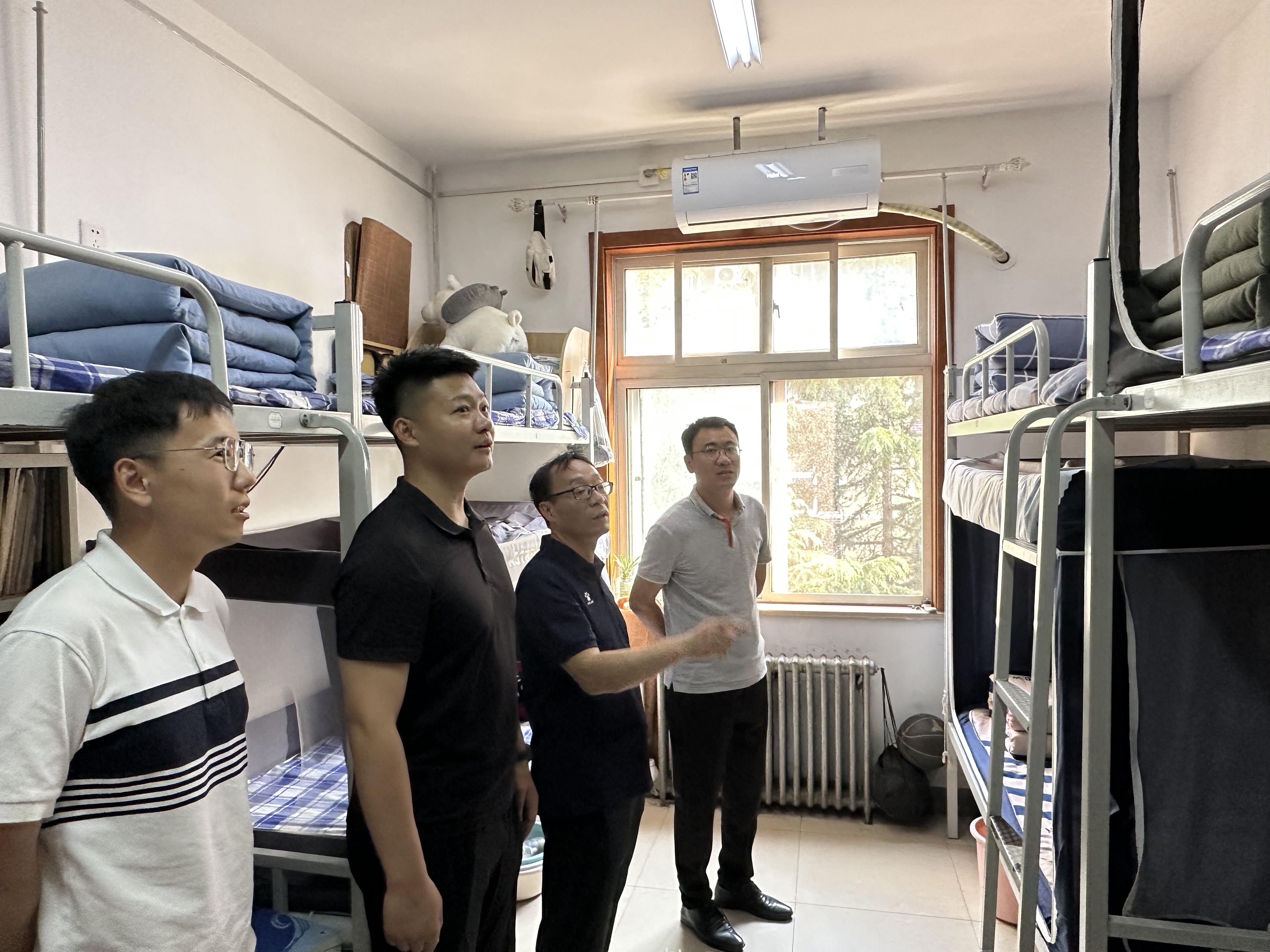 贾建闯为学院退役学生宿舍进行挂牌,当镌刻着“退伍学生宿舍”字样的牌匾被稳稳挂起,金属质感的字迹在阳光下熠熠生辉,不仅是对退伍大学生身份的独特标识,更承载着沉甸甸的责任与期许。挂牌仪式结束后,贾建闯与退伍大学生亲切交谈,询问退伍大学生在宿舍学习、生活等方面的情况,勉励他们要珍惜军人荣誉,时刻保持军人优良作风,在学习生活中发挥示范、带动、引领、辐射作用。