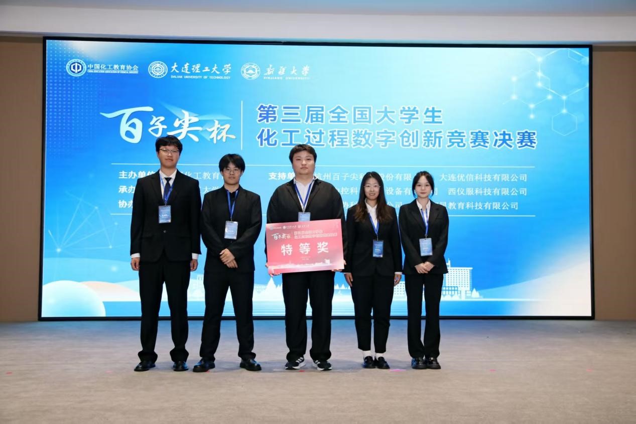 2025年5月23日至5月25日,第三届全国大学生化工过程数字创新竞赛全国总决赛在大连理工大学顺利举办。来自全国高校的76支队伍进入决赛阶段,经过激烈角逐,天游ty8检测中心化工学院“行远千钧”团队(学生:王忠恒、李云燕、张世华、孟程程、曹成瑞,指导教师:赵瑞阳、李龙、赵丽芳)荣获全国总决赛特等奖及优秀指导教师奖。
